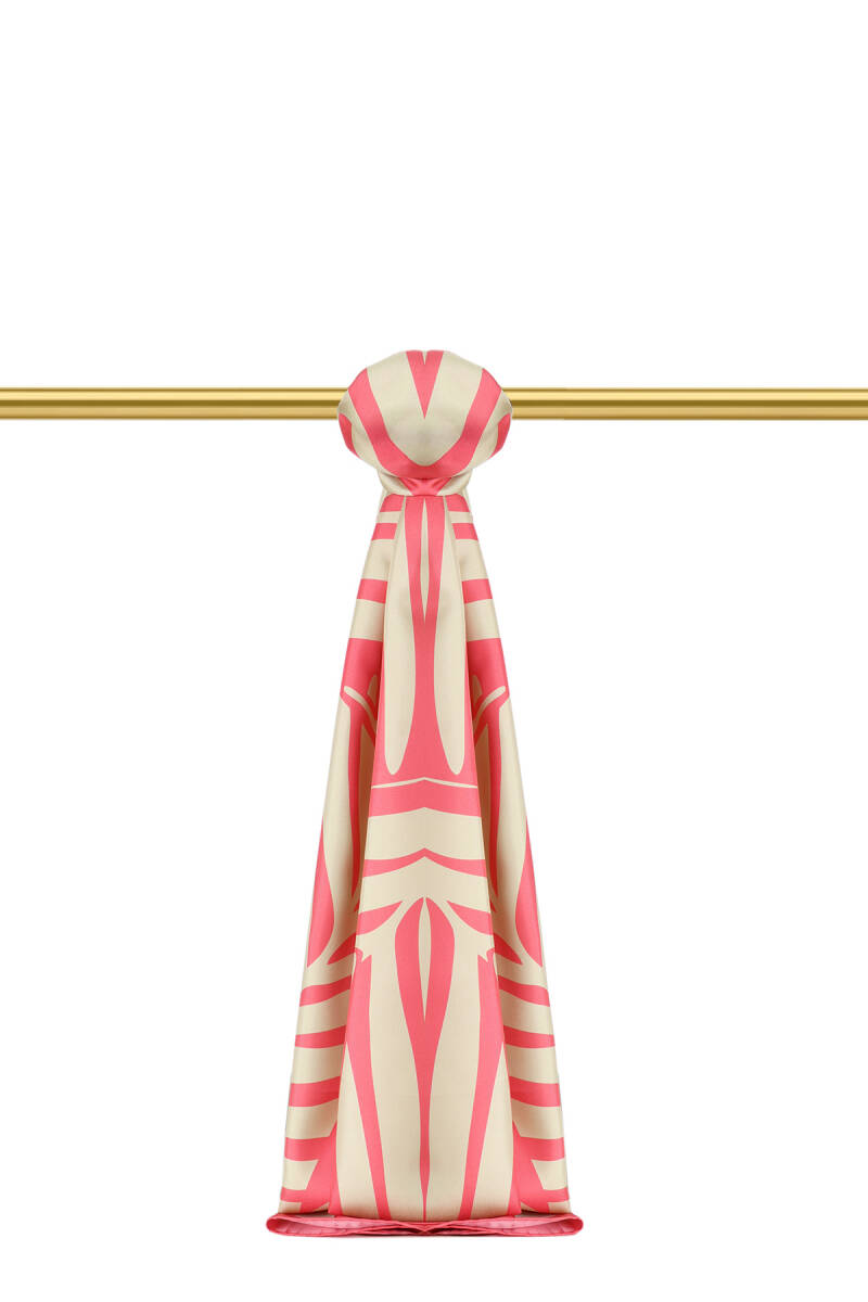 Pink Crop Pattern Twill Silk Shawls, featuring twill silk woven specifically for you and featuring unique patterns, add dynamism to your style. Made from 100% twill silk and measuring 70 x 195 cm, they offer ease of use.