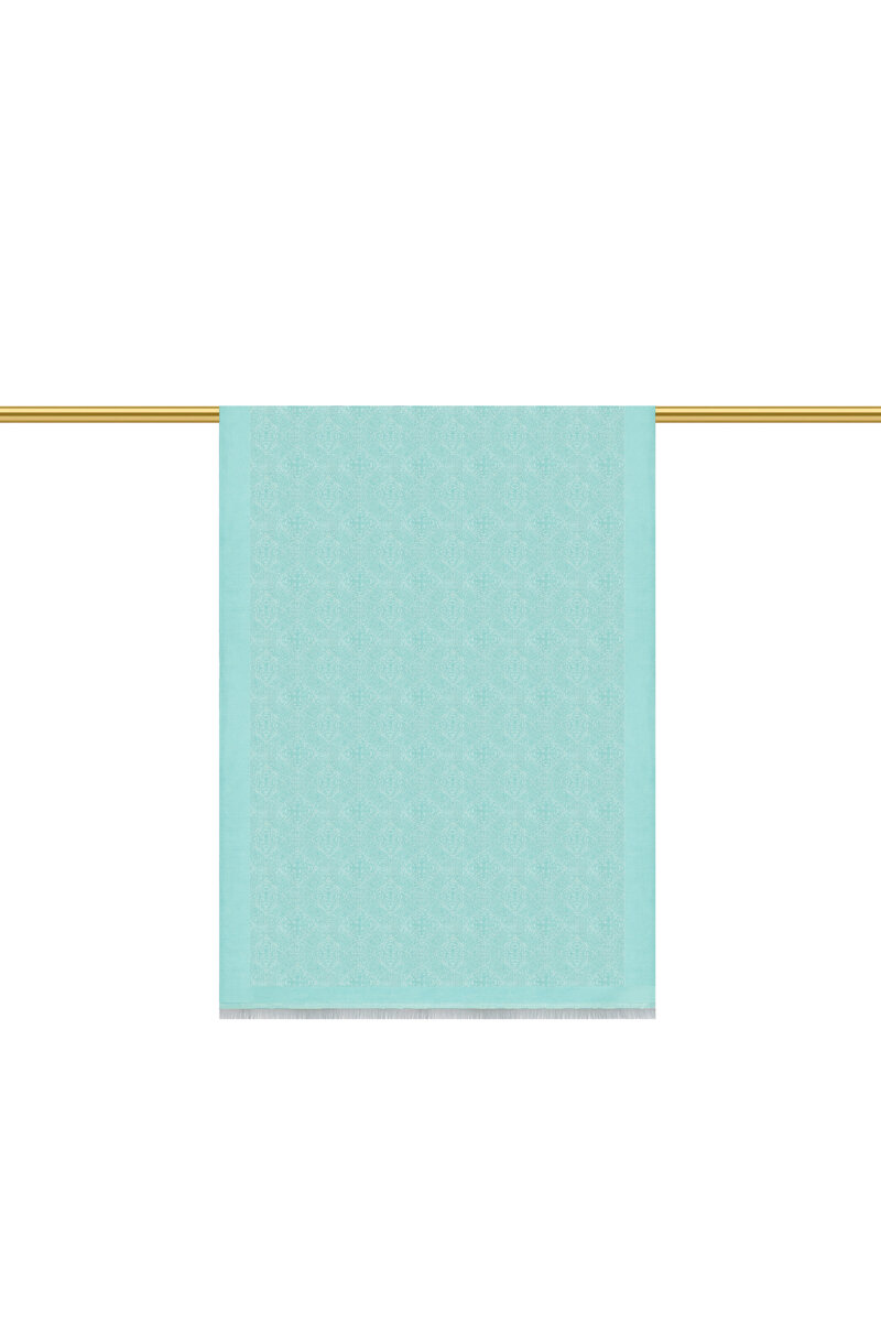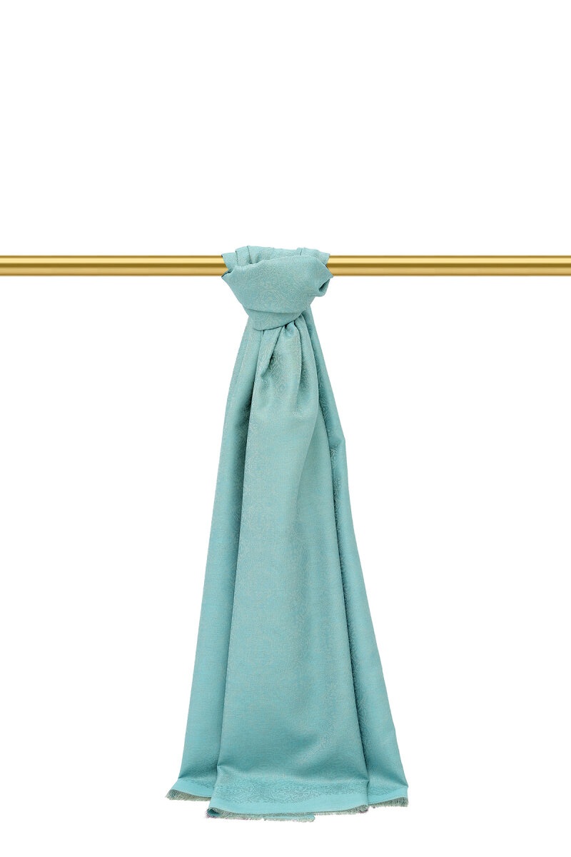 Su Yeşil Damask Desen Jakarlı İpek Şal