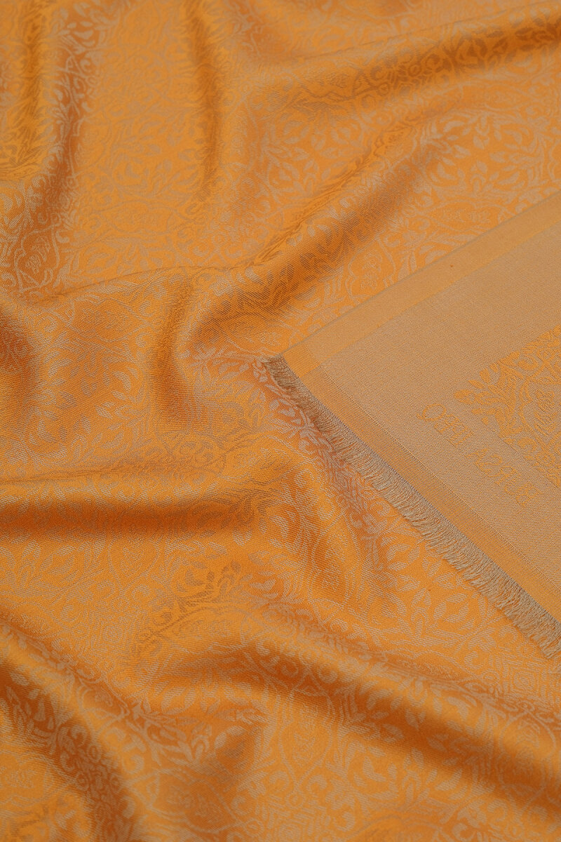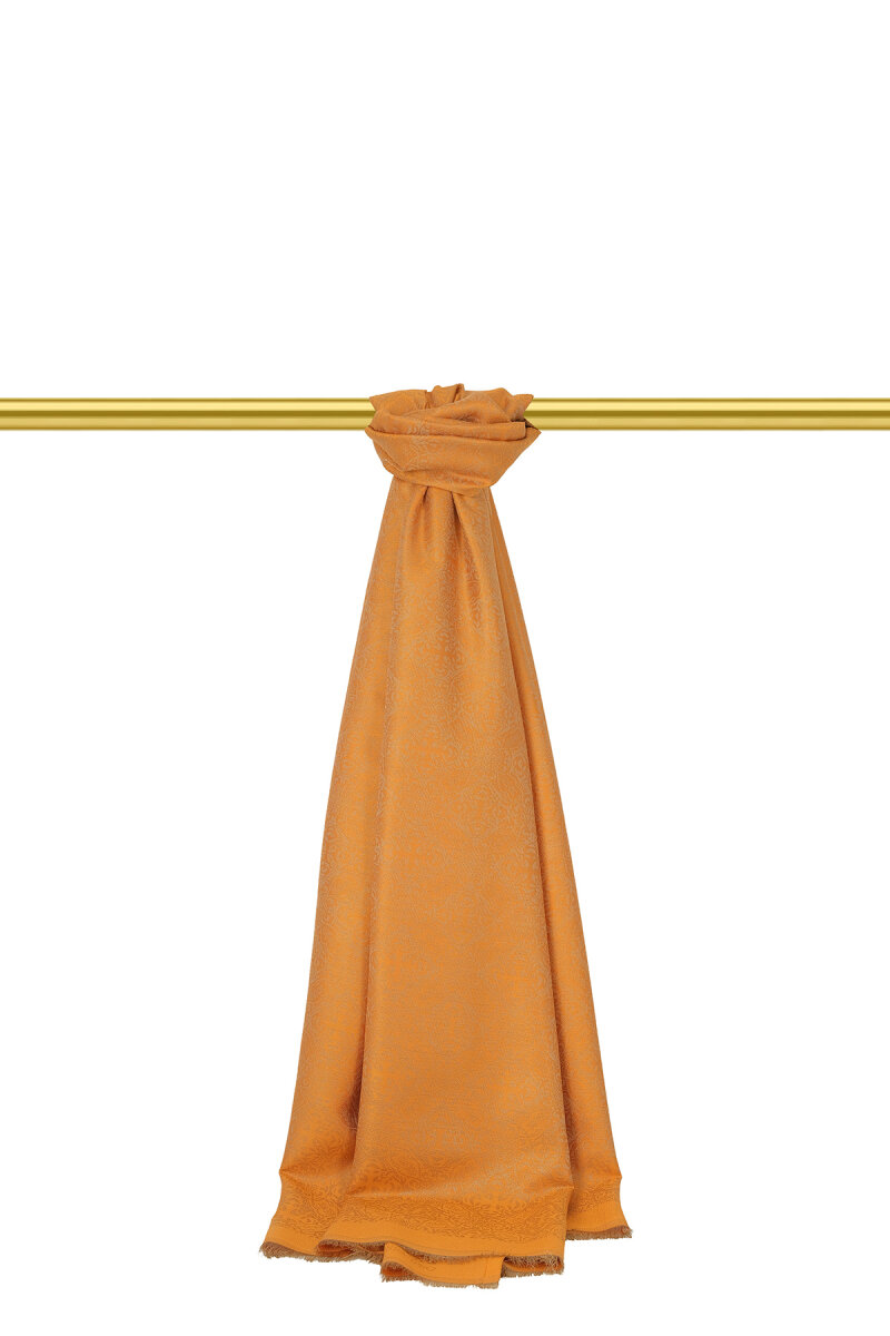 Turuncu Damask Desen Jakarlı İpek Şal