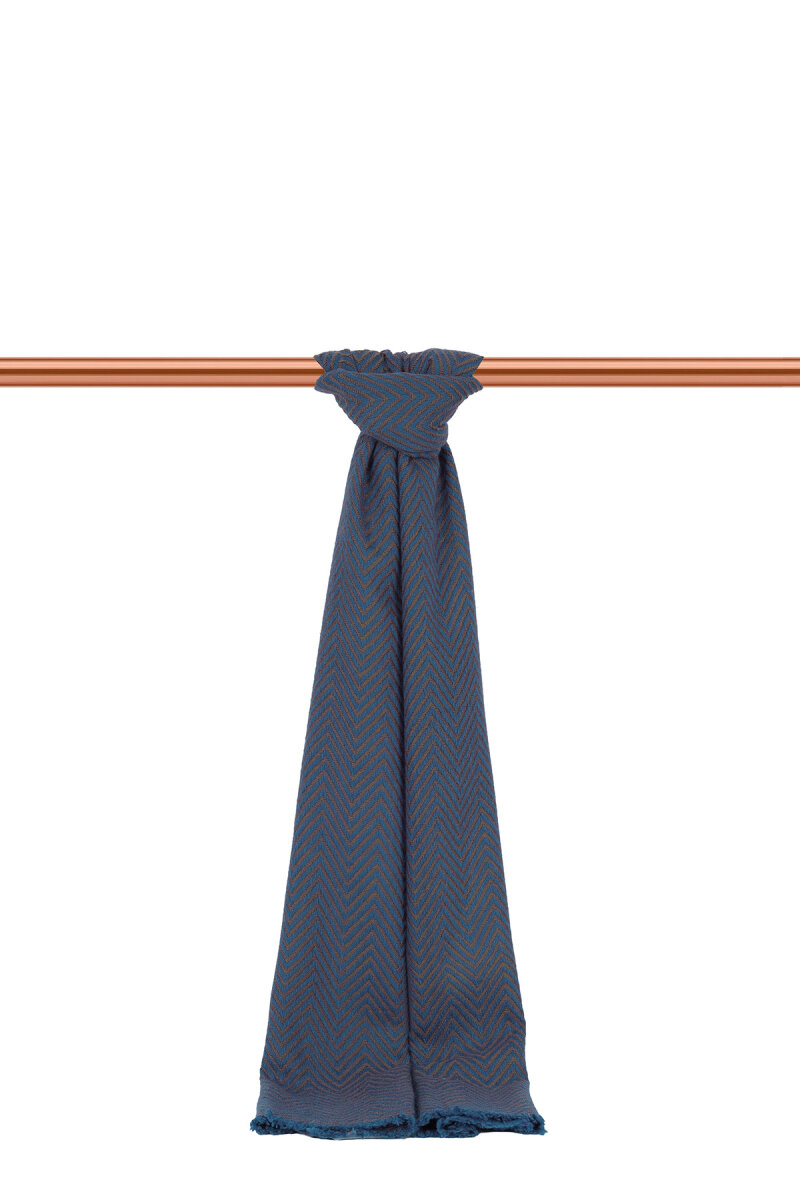 Turkuaz Bej Desenli Dar Yün Kaşkol
