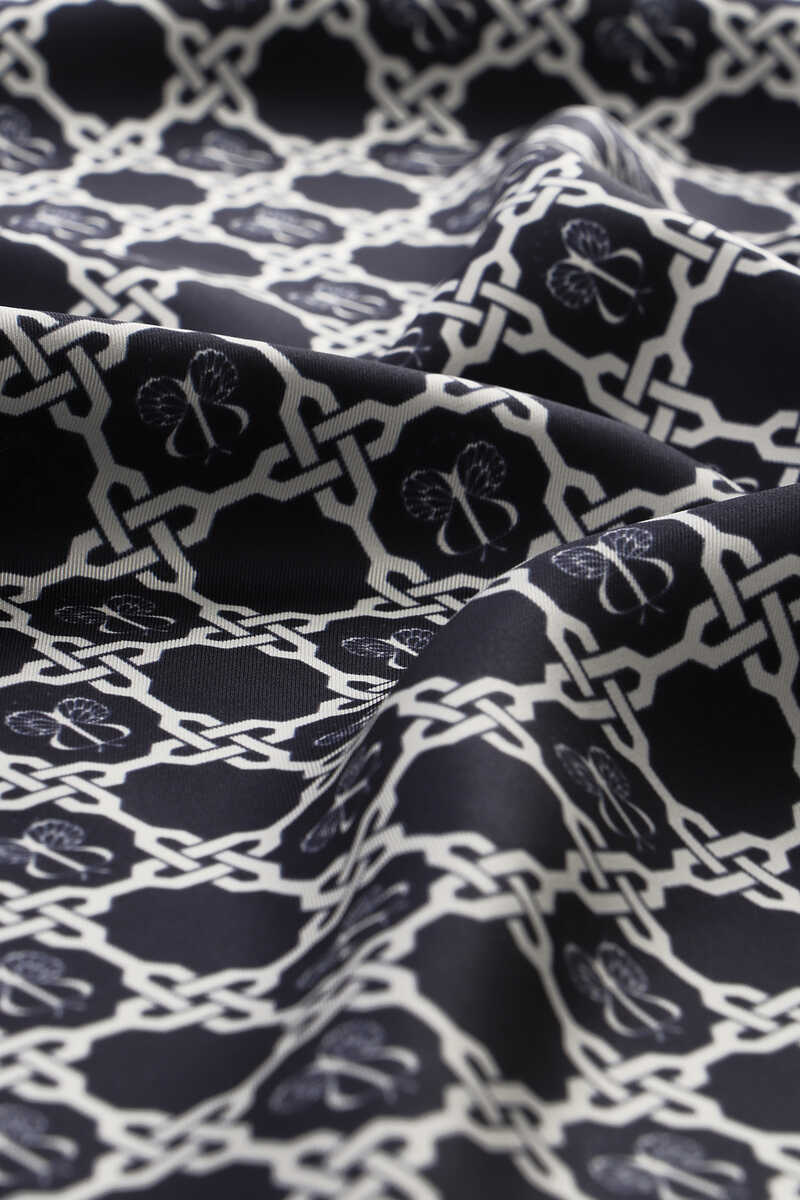 You will feel the atmosphere of integrity in different beauty with the Dark Navy Blue Chain Monogram Twill Silk Square Scarf reflected in the unique elegance of silk. Our product; It offers ease of use with its 100% silk content and dimensions of 90x90cm.