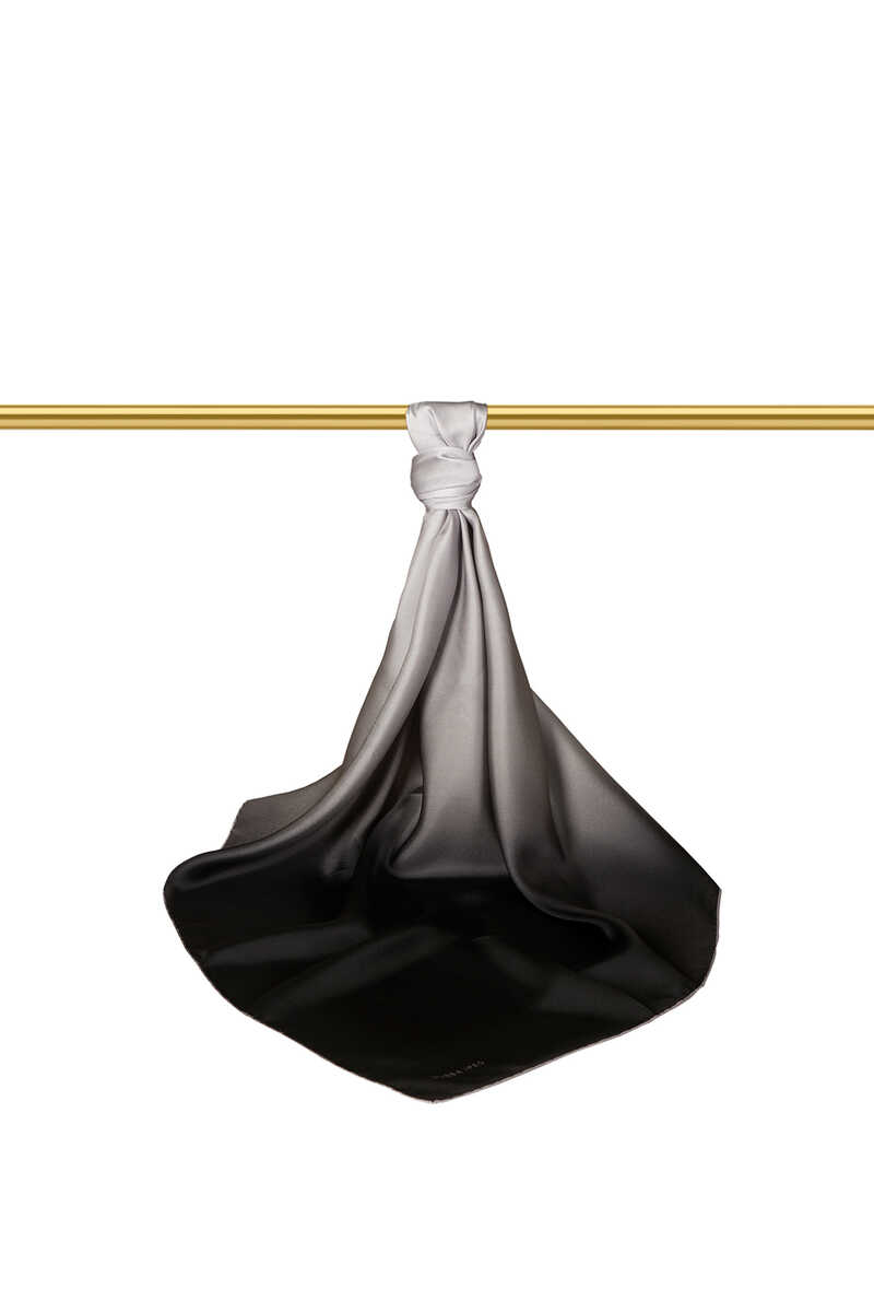 Crowning your plain and simple look, the black gray gradient twill silk Square Scarf with an upright and full stance appeals to all seasons with its wide color range in its design that is far from all details and symbolizes the emphasis of simplicity. It offers comfort of use with its 100% Silk content and 90x90cm dimensions.