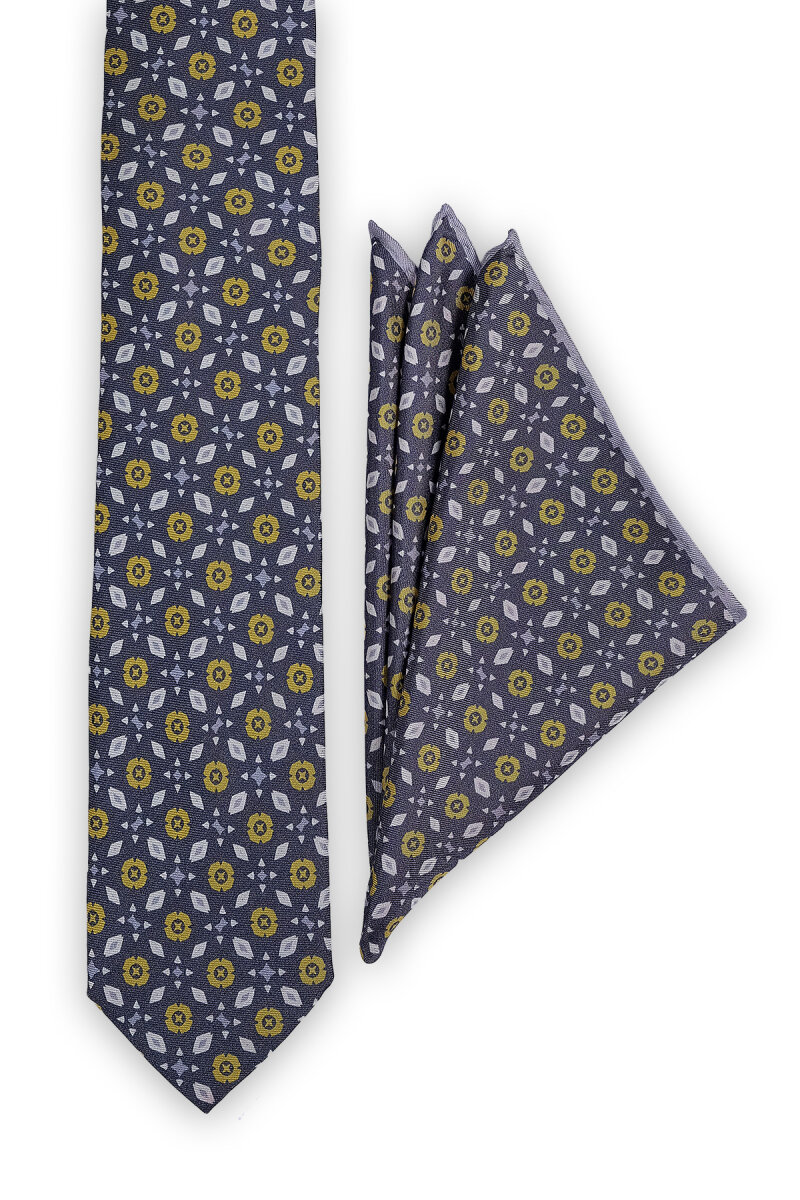 Füme Desenli İpek Kravat Takımı