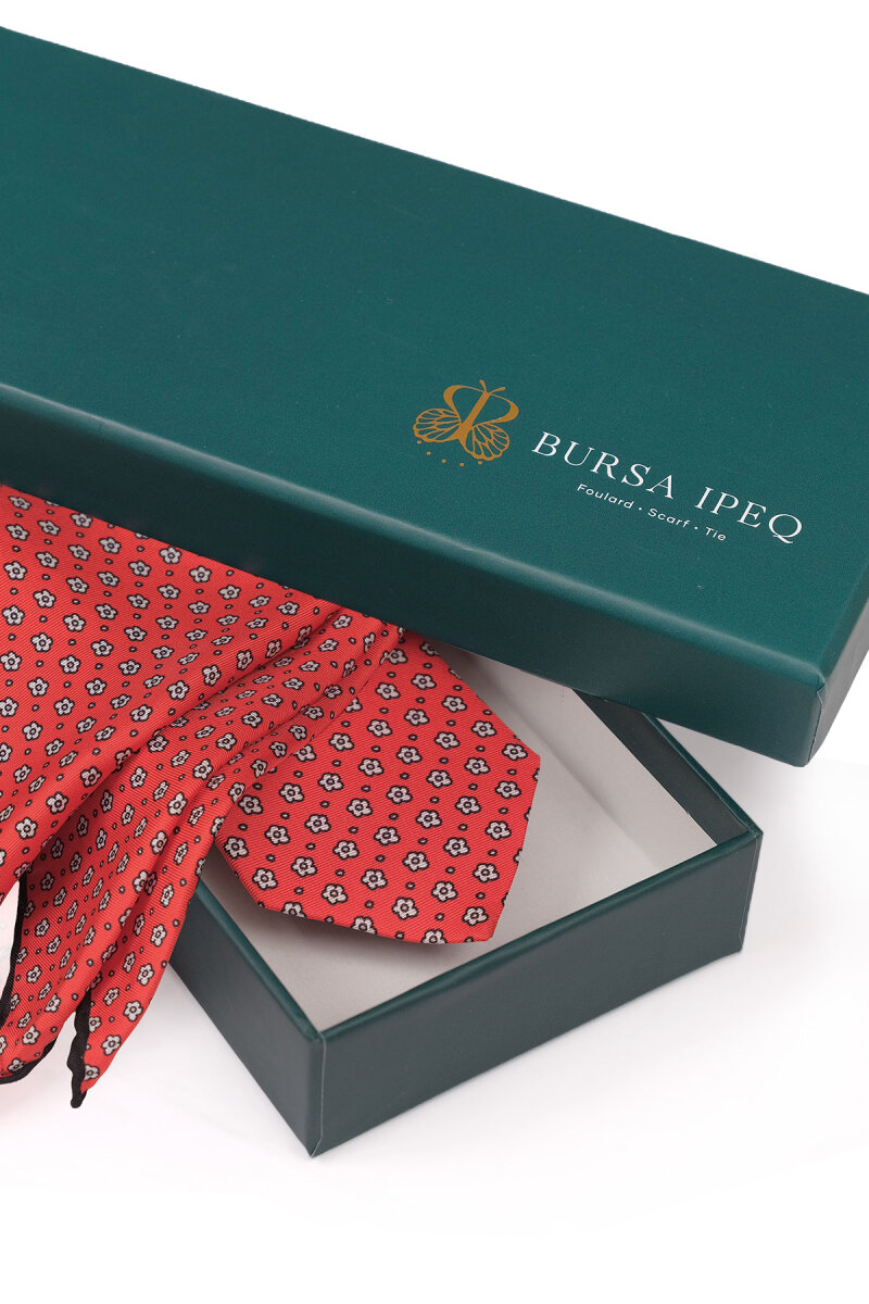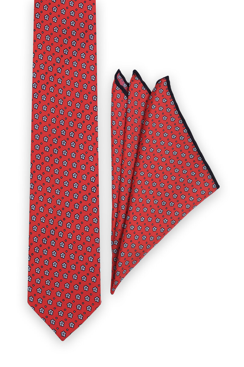 Kırmızı Desenli İpek Kravat Takımı