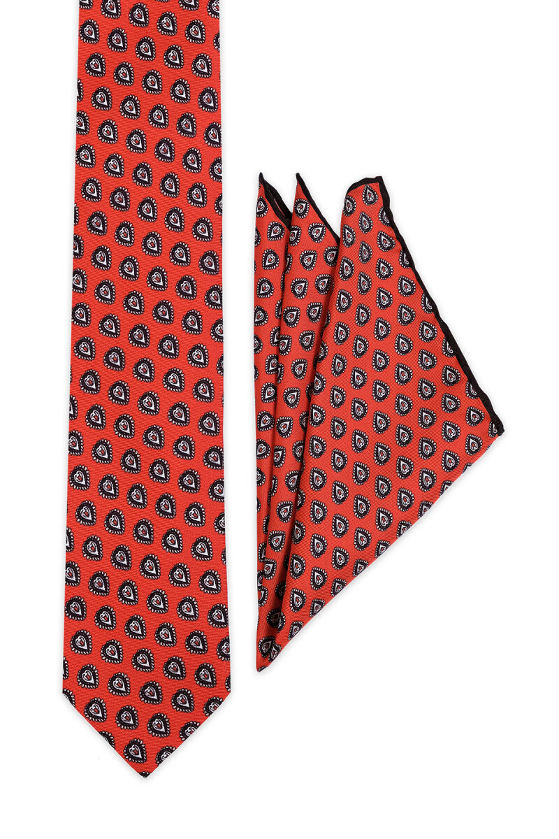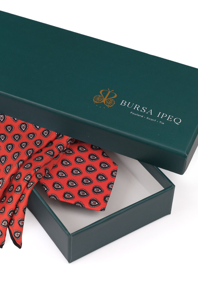 Kırmızı Desenli İpek Kravat Takımı