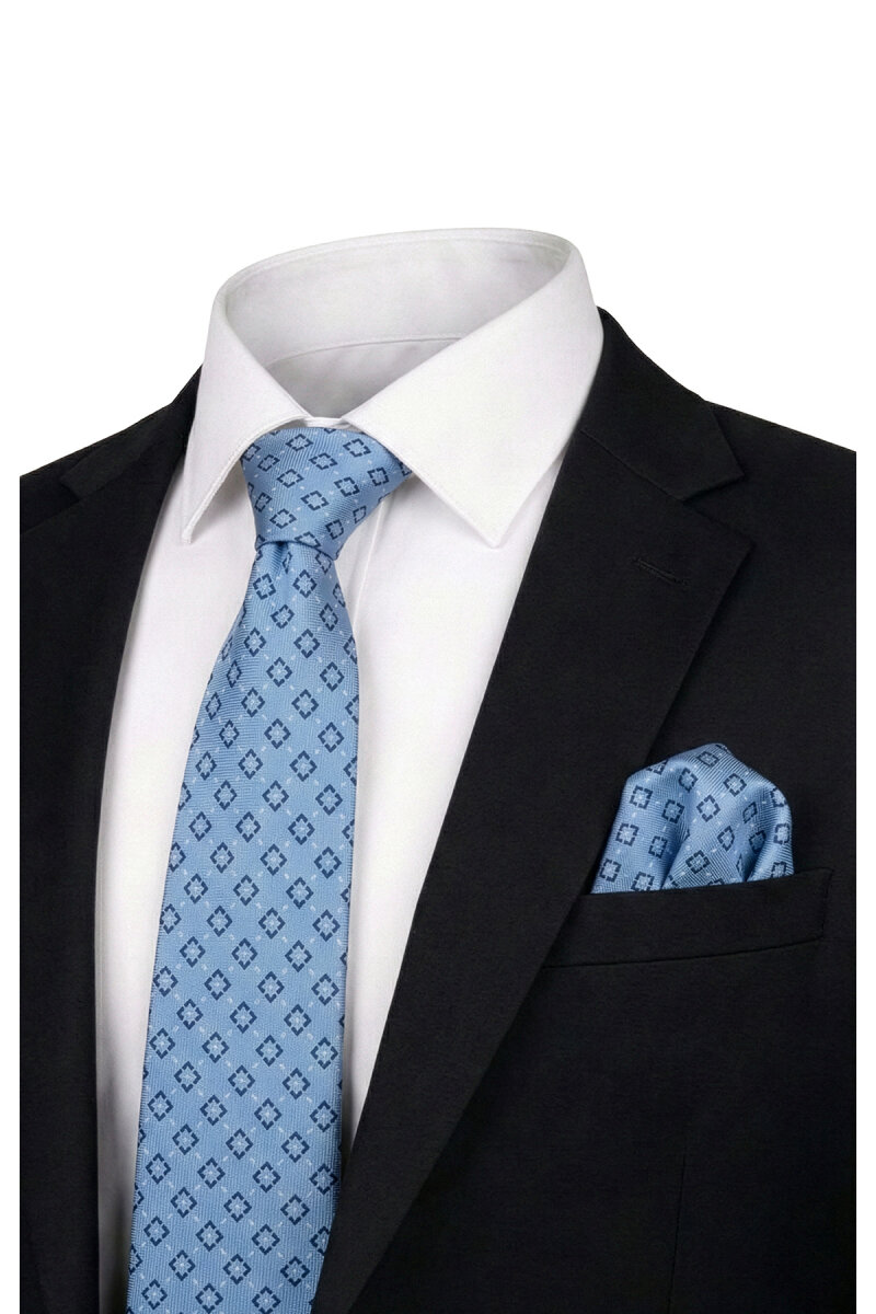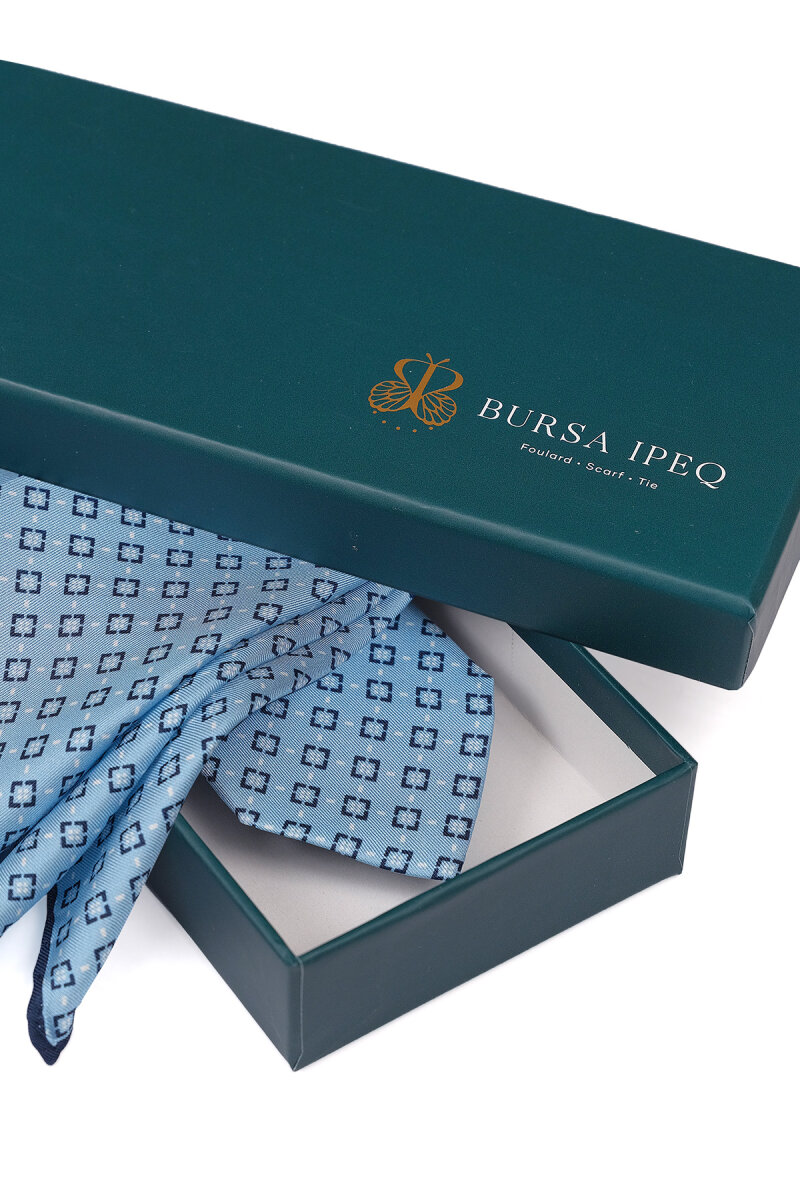 Mavi Desenli İpek Kravat Takımı