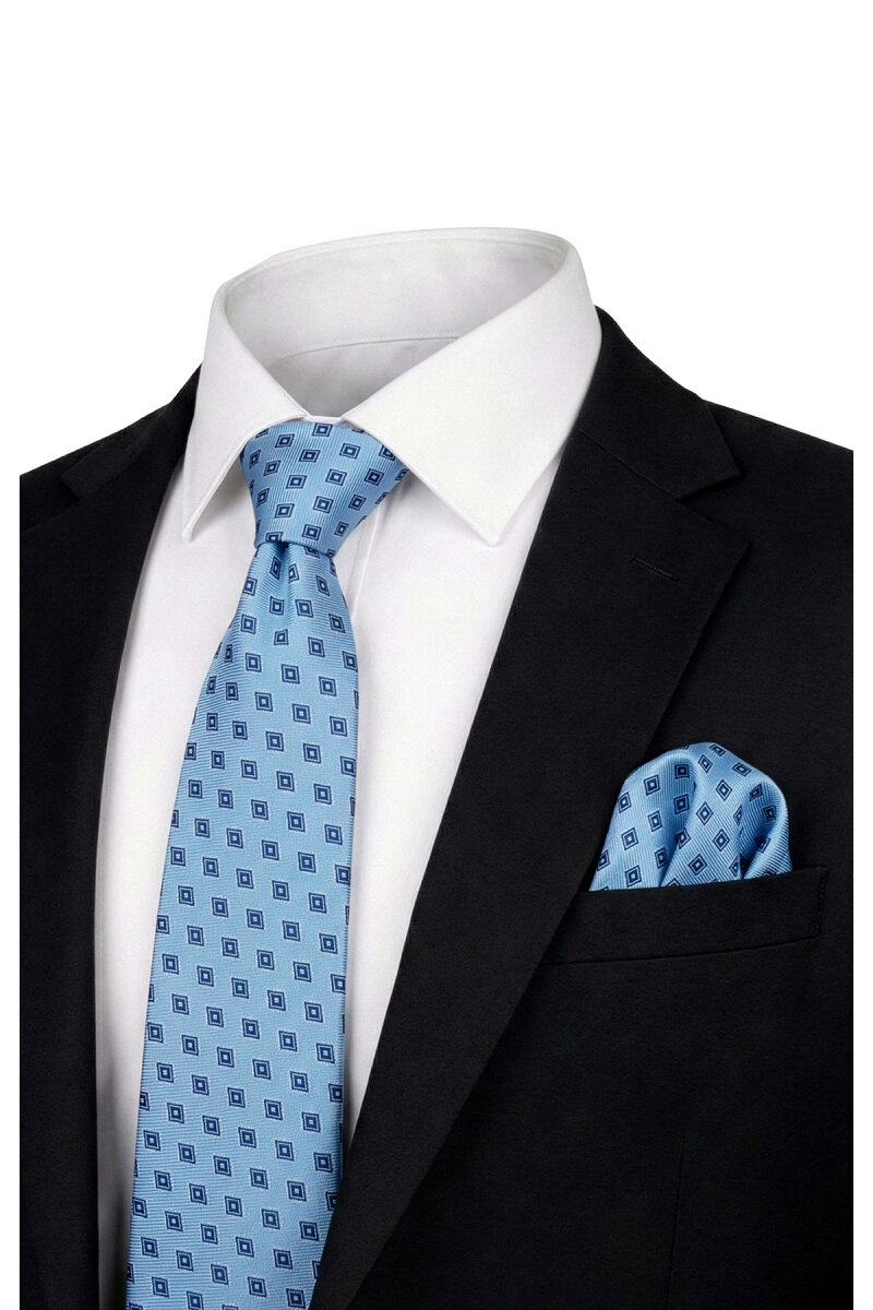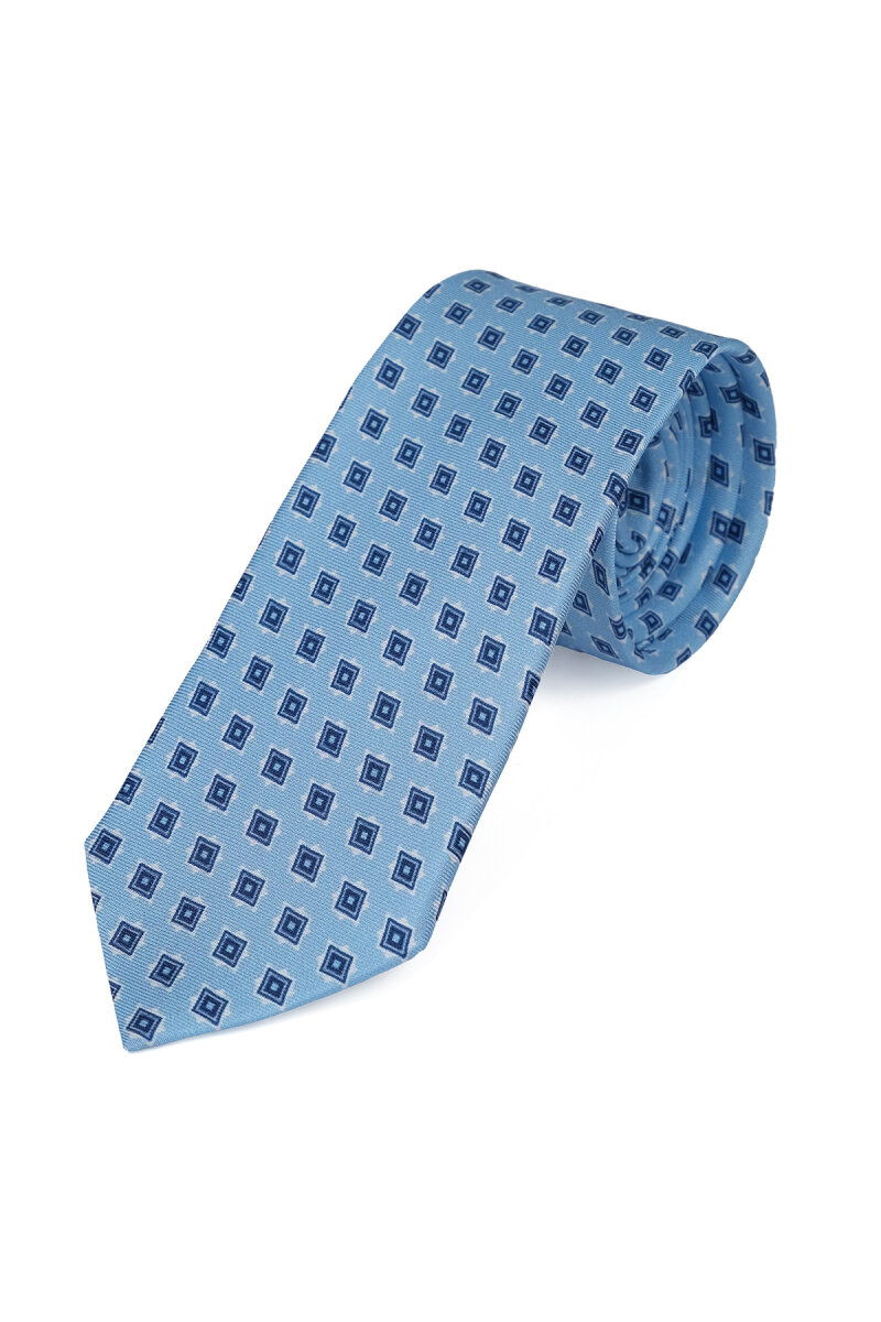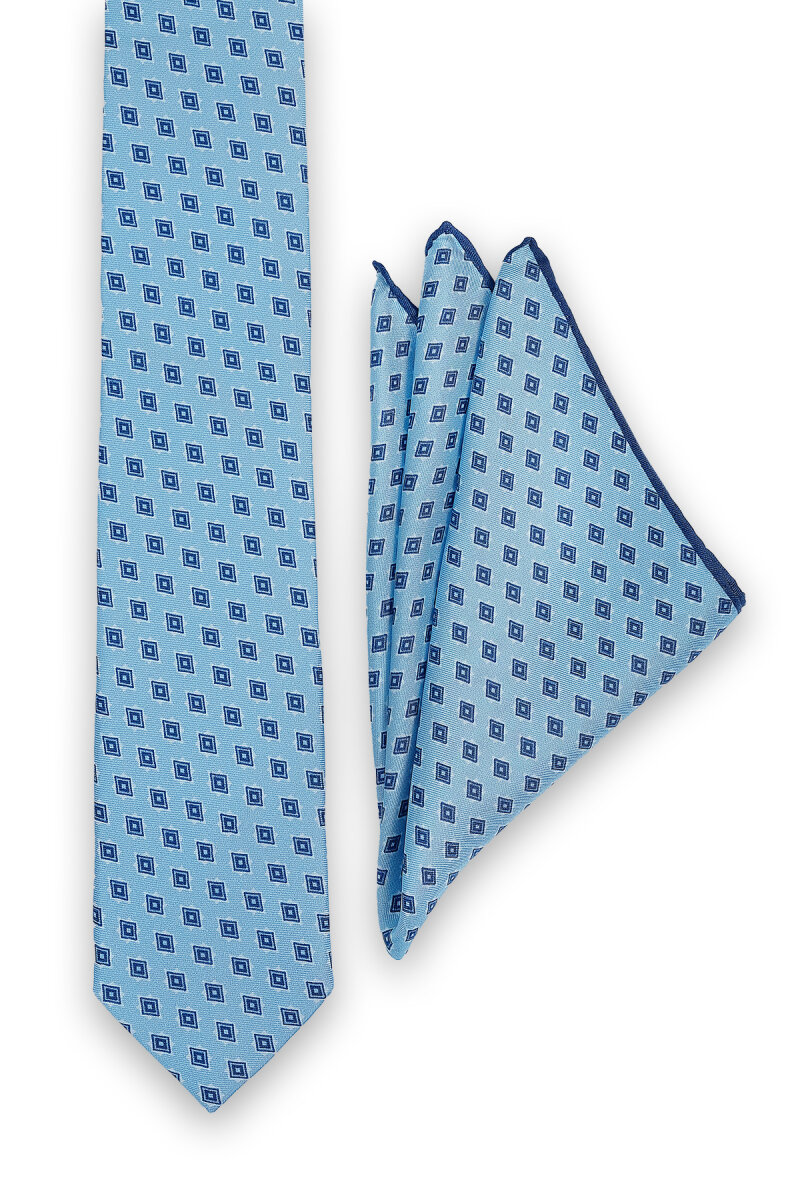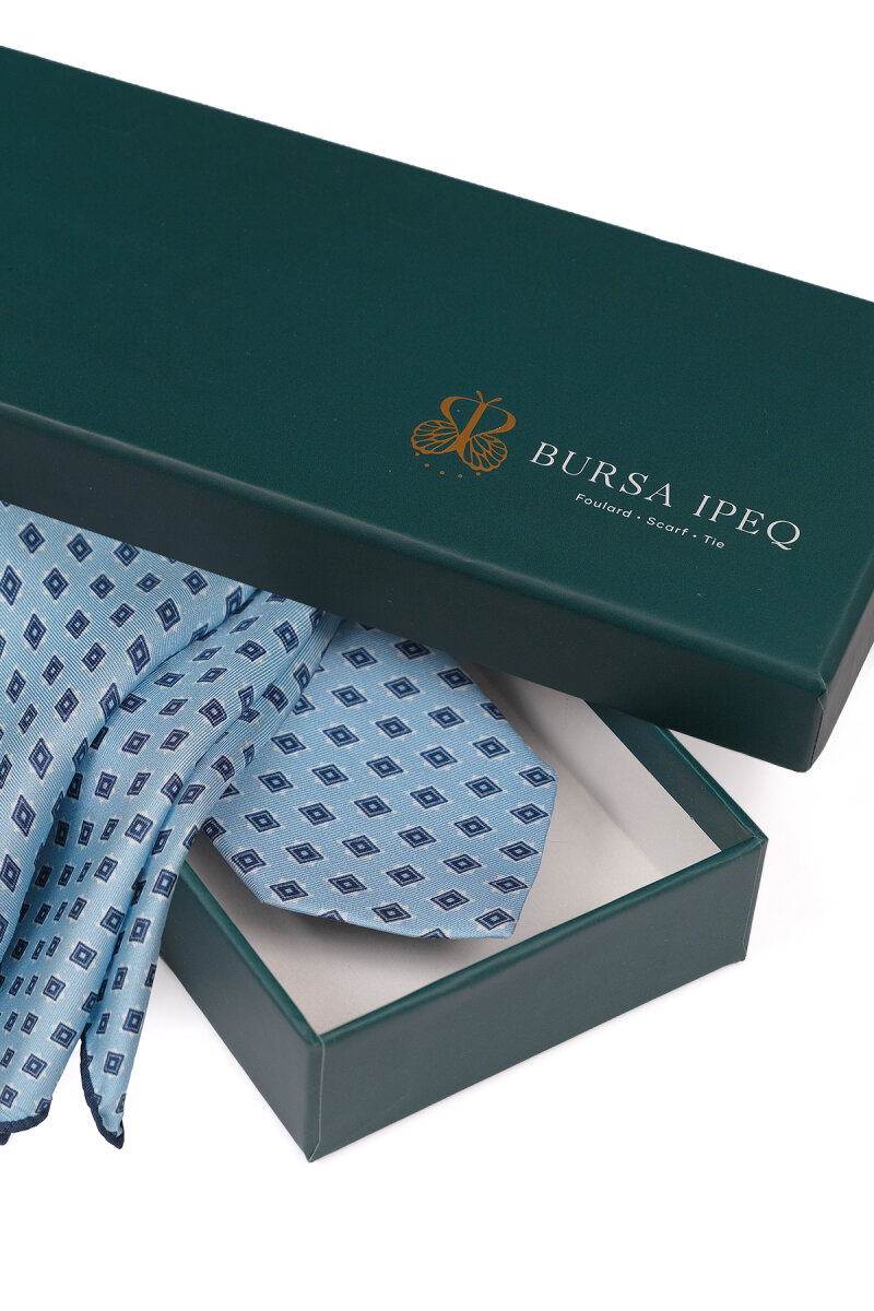 Mavi Desenli İpek Kravat Takımı