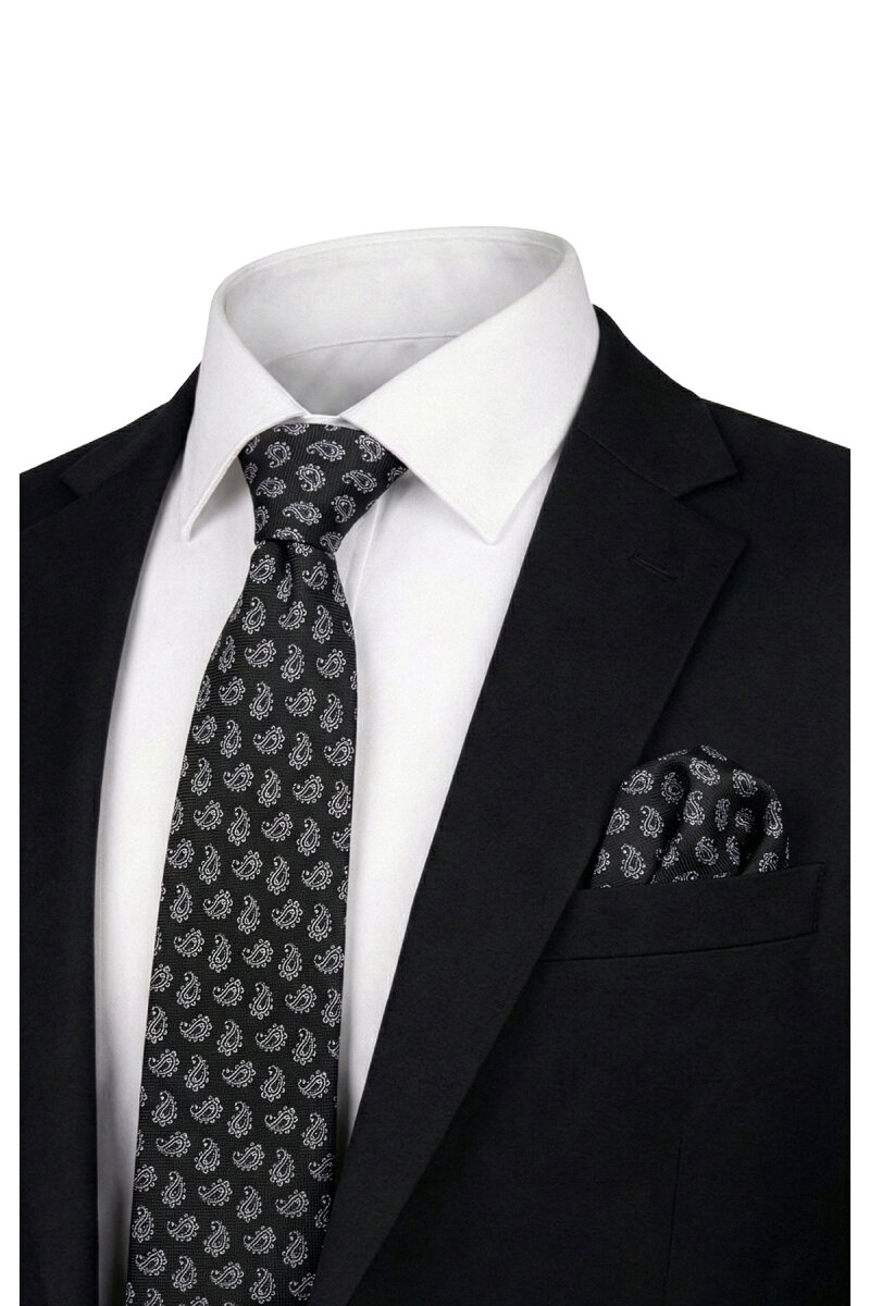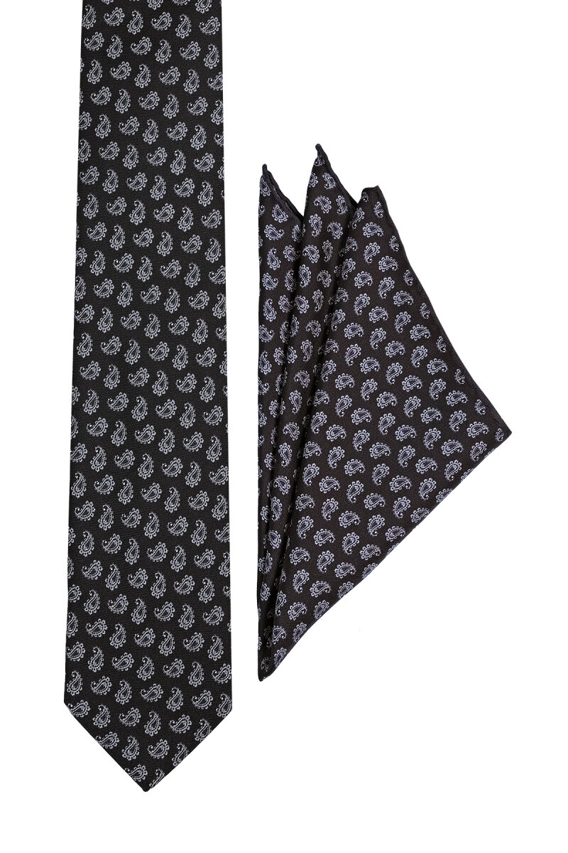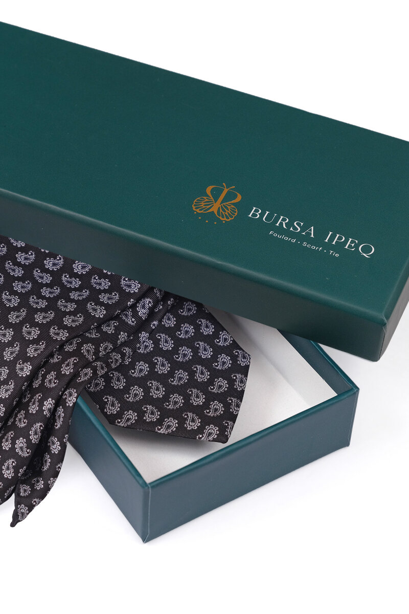 Siyah Desenli İpek Kravat Takımı