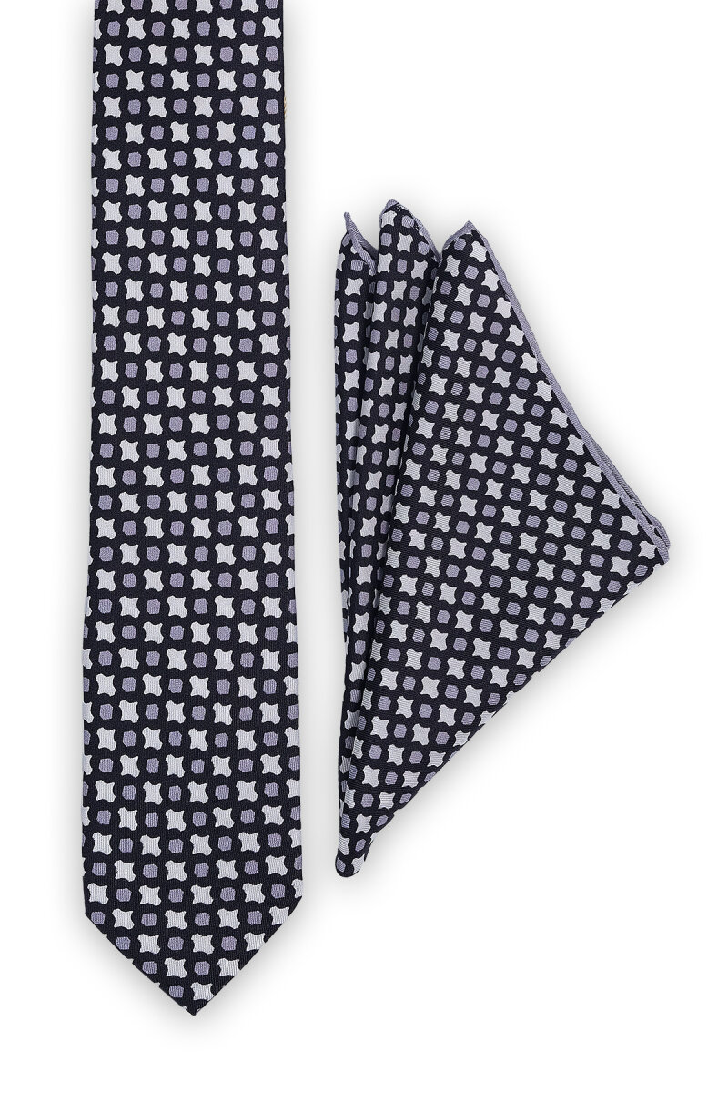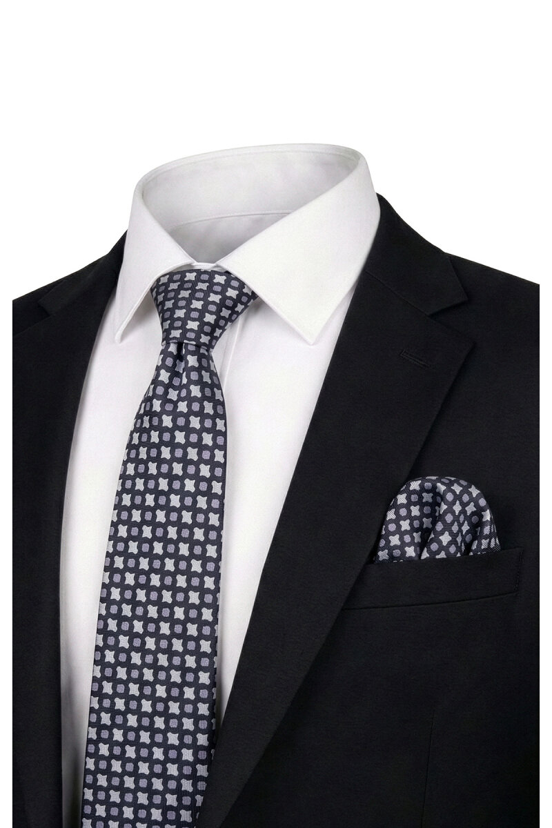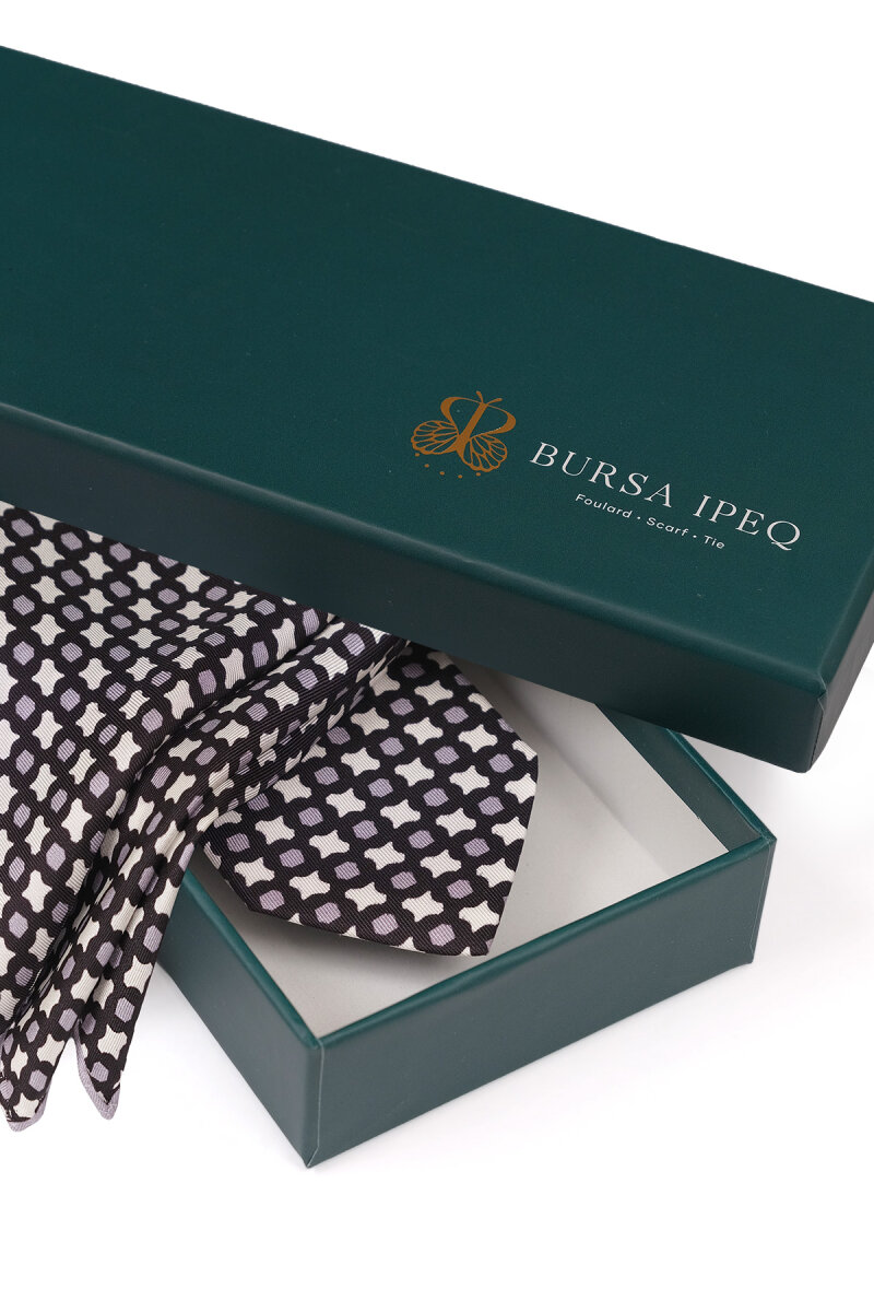 Siyah Desenli İpek Kravat Takımı