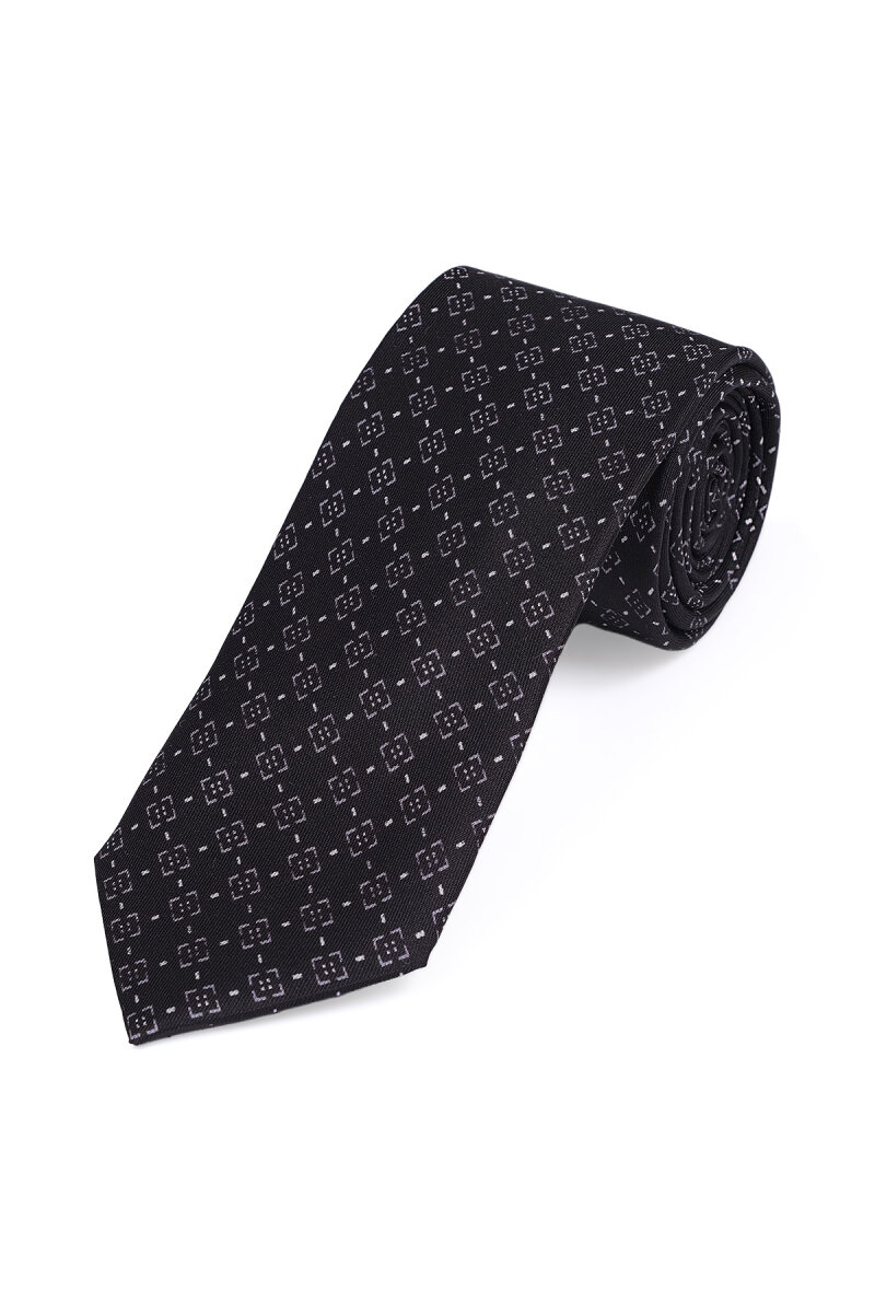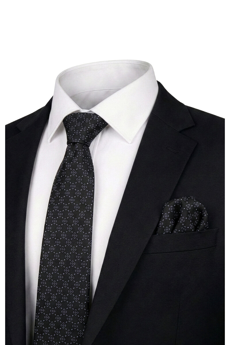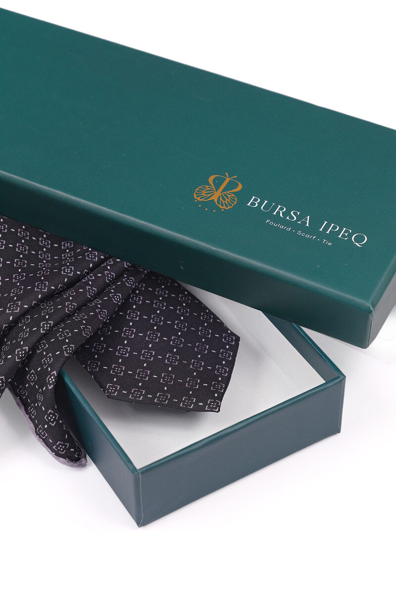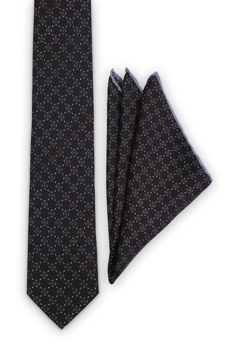 Siyah Desenli İpek Kravat Takımı