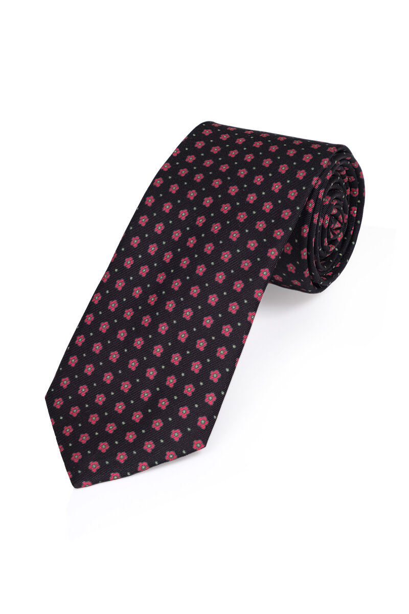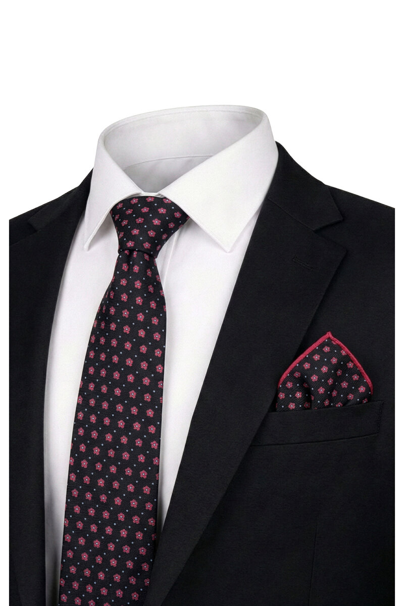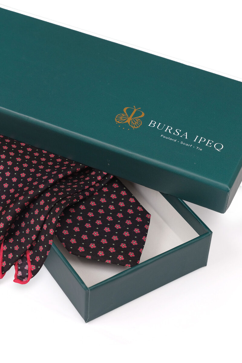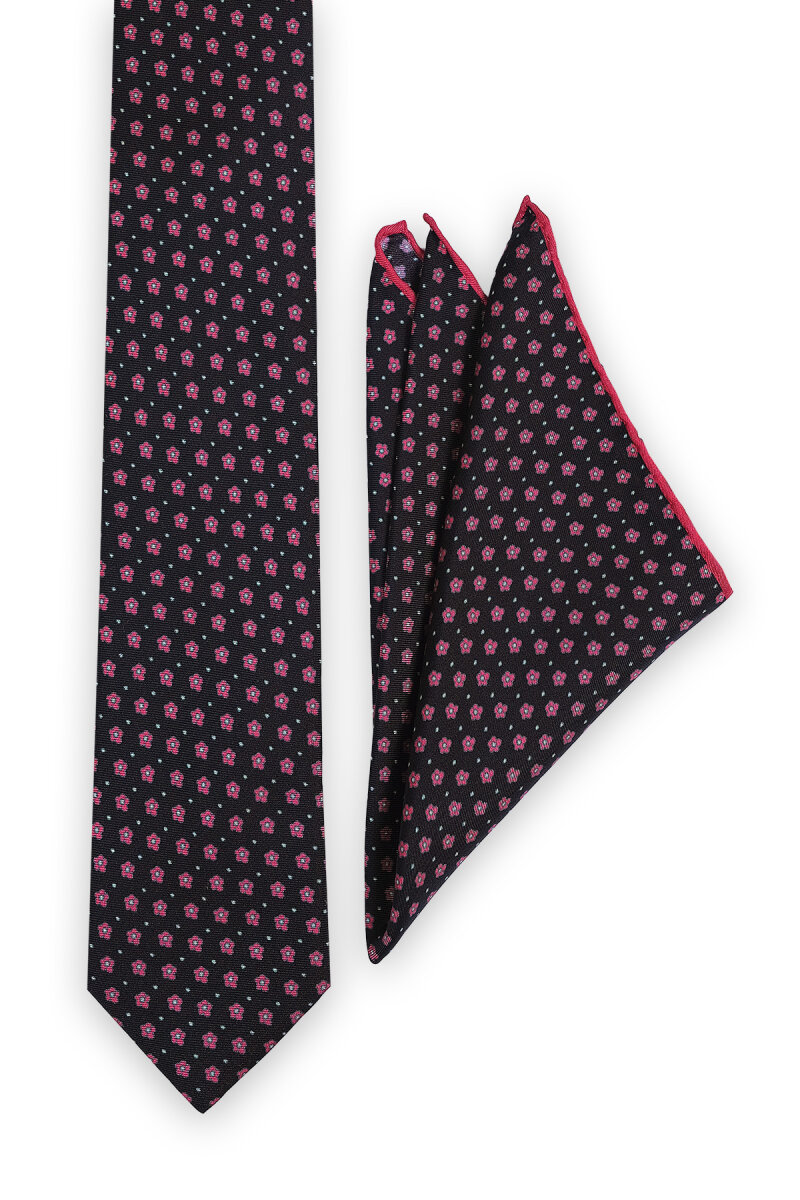 Siyah Desenli İpek Kravat Takımı