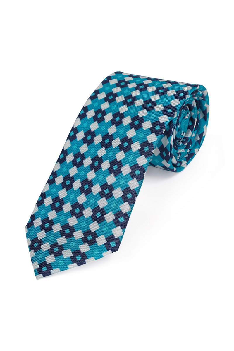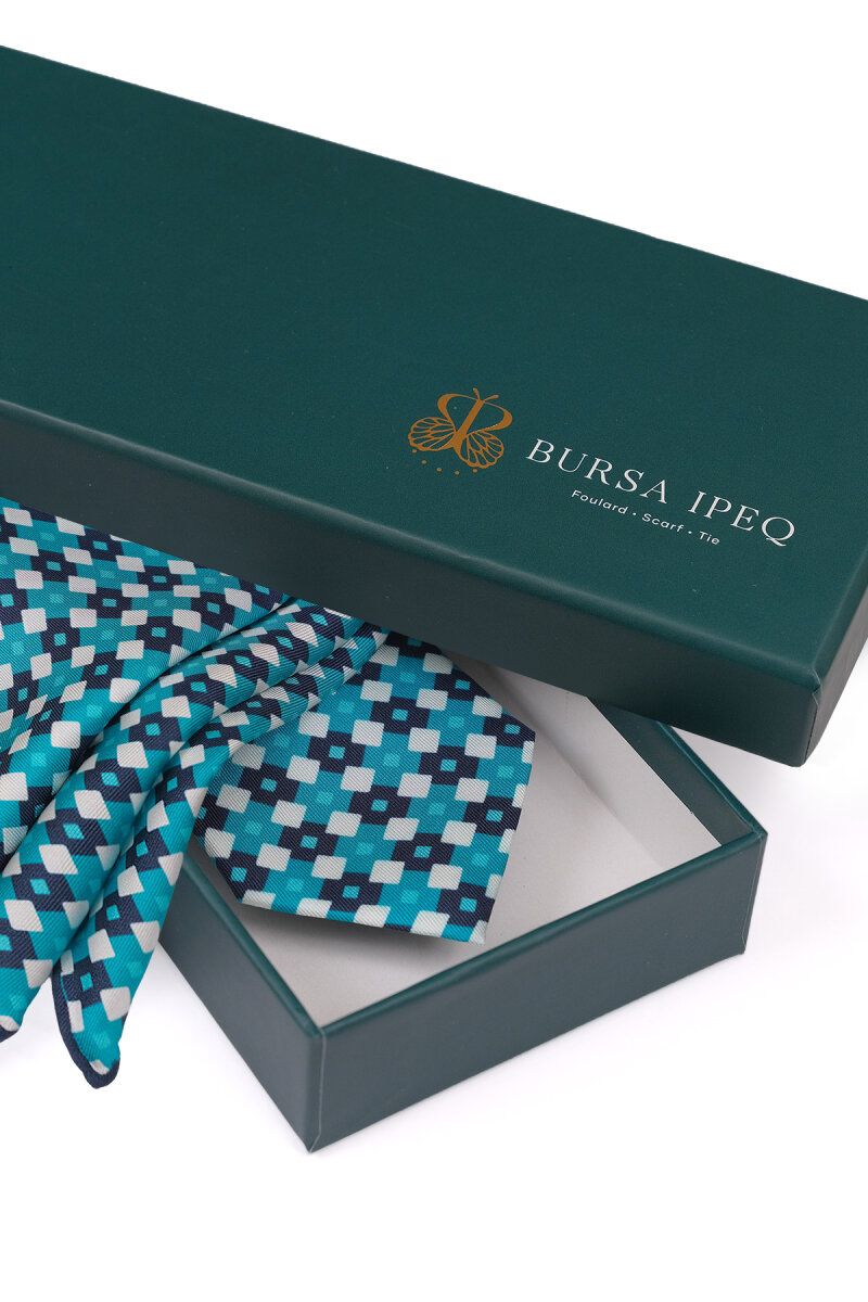 Turkuaz Desenli İpek Kravat Takımı
