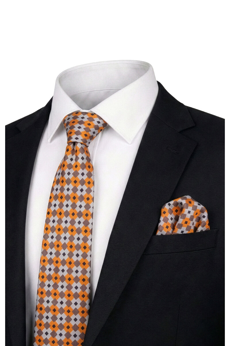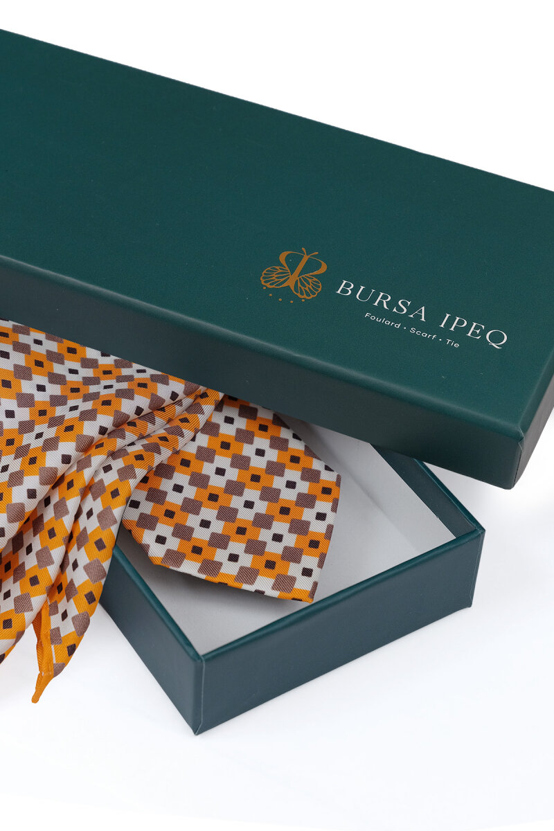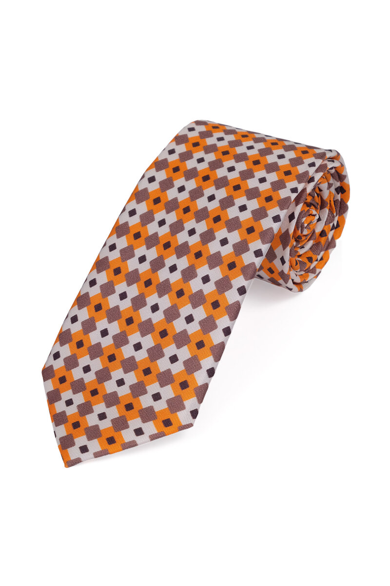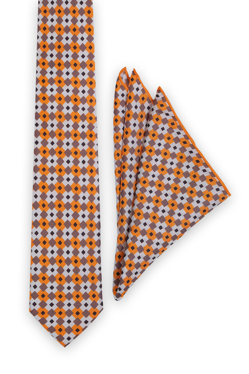 Turuncu Desenli İpek Kravat Takımı