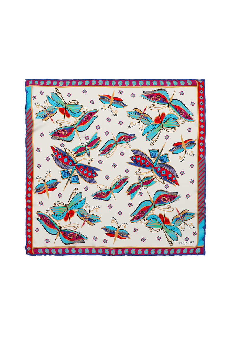 Navy Blue Turkish Pattern Carnation Tulip Pattern Silky Square Scarf