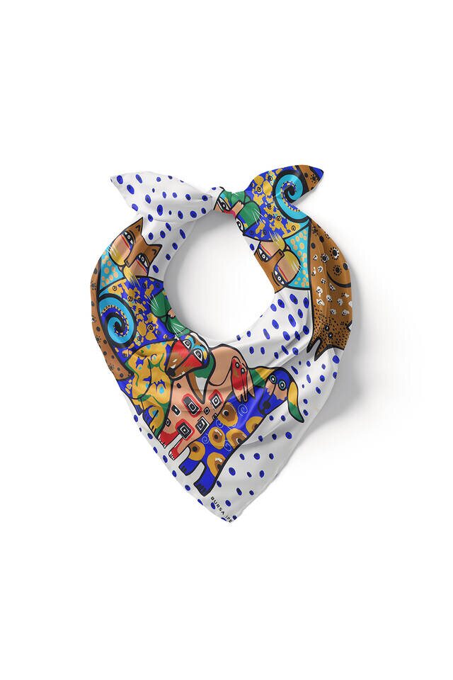Blue Red Turkish Pattern Carnation Tulip Pattern Silky Square Scarf