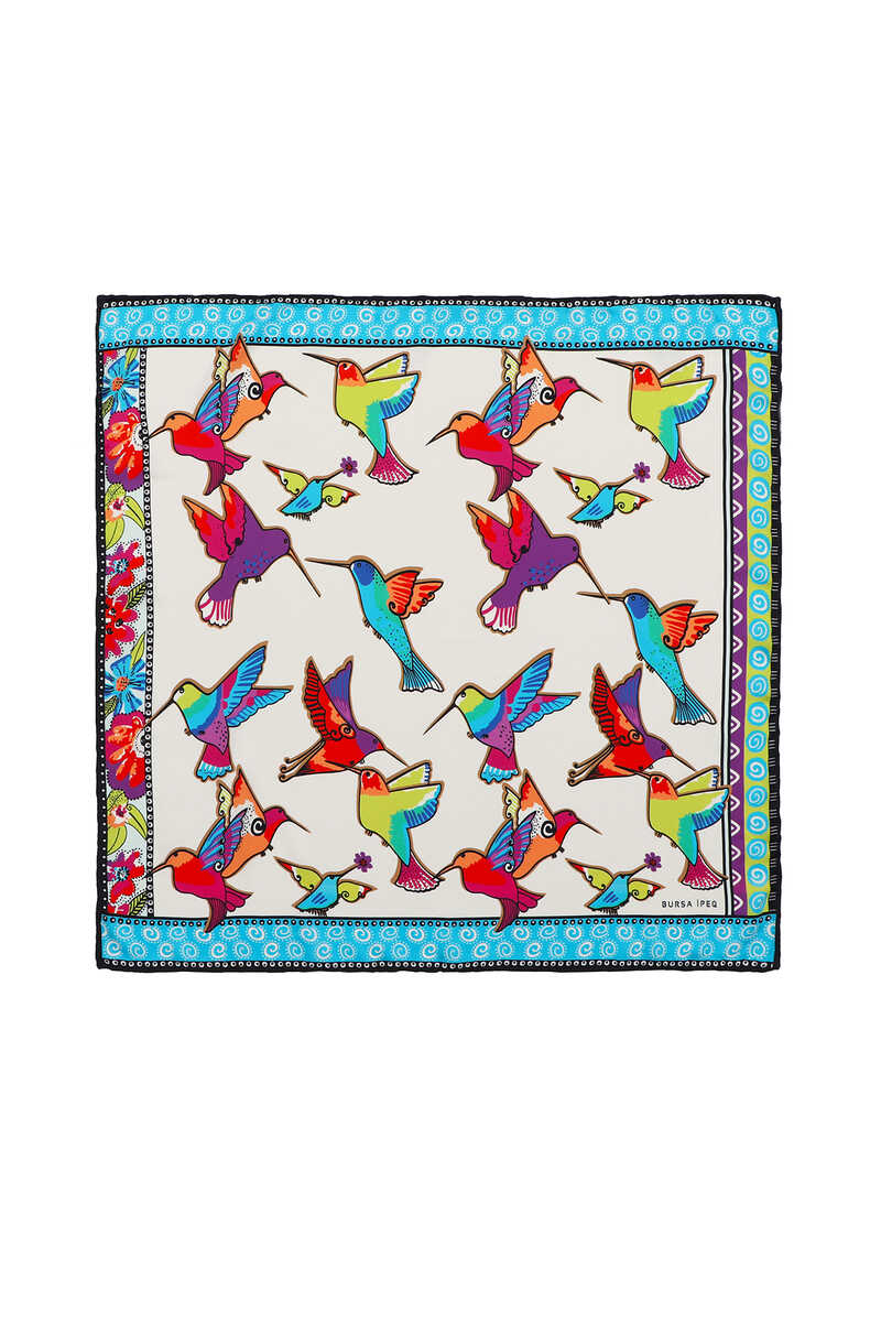 Navy Blue Saks Selçuk Pattern Silk Foulard
