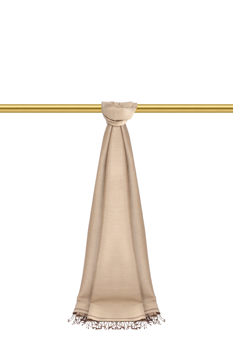 A timeless companion to your classic and sporty style, the Cream double-sided silk shawl adds value to your life in the glittering world of fashion with its suitability for use on both sides, its upright and solid structure, and its shiny appearance. Our product offers ease of use with its 100% silk content and 70x200cm dimensions.