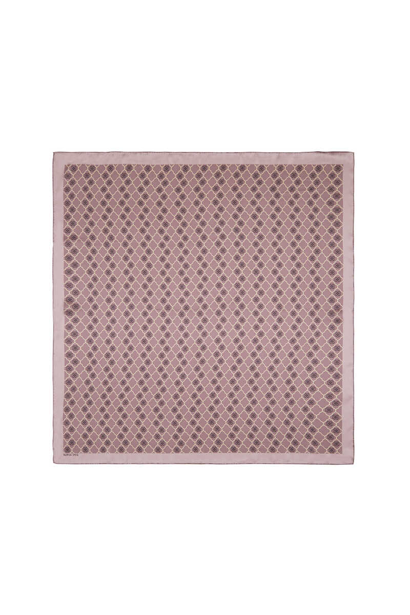 timeless companion to your classic and sports style, Dried Rose monogamous patterned silk Square Scarf; With its upright and solid stance and bright appearance, it adds value to you in the glittering world of fashion. It offers comfort of use with its 100% Silk content and 90x90cm dimensions.