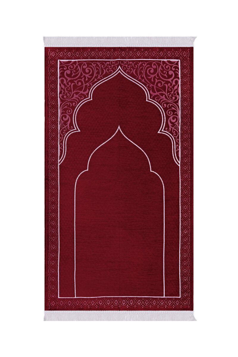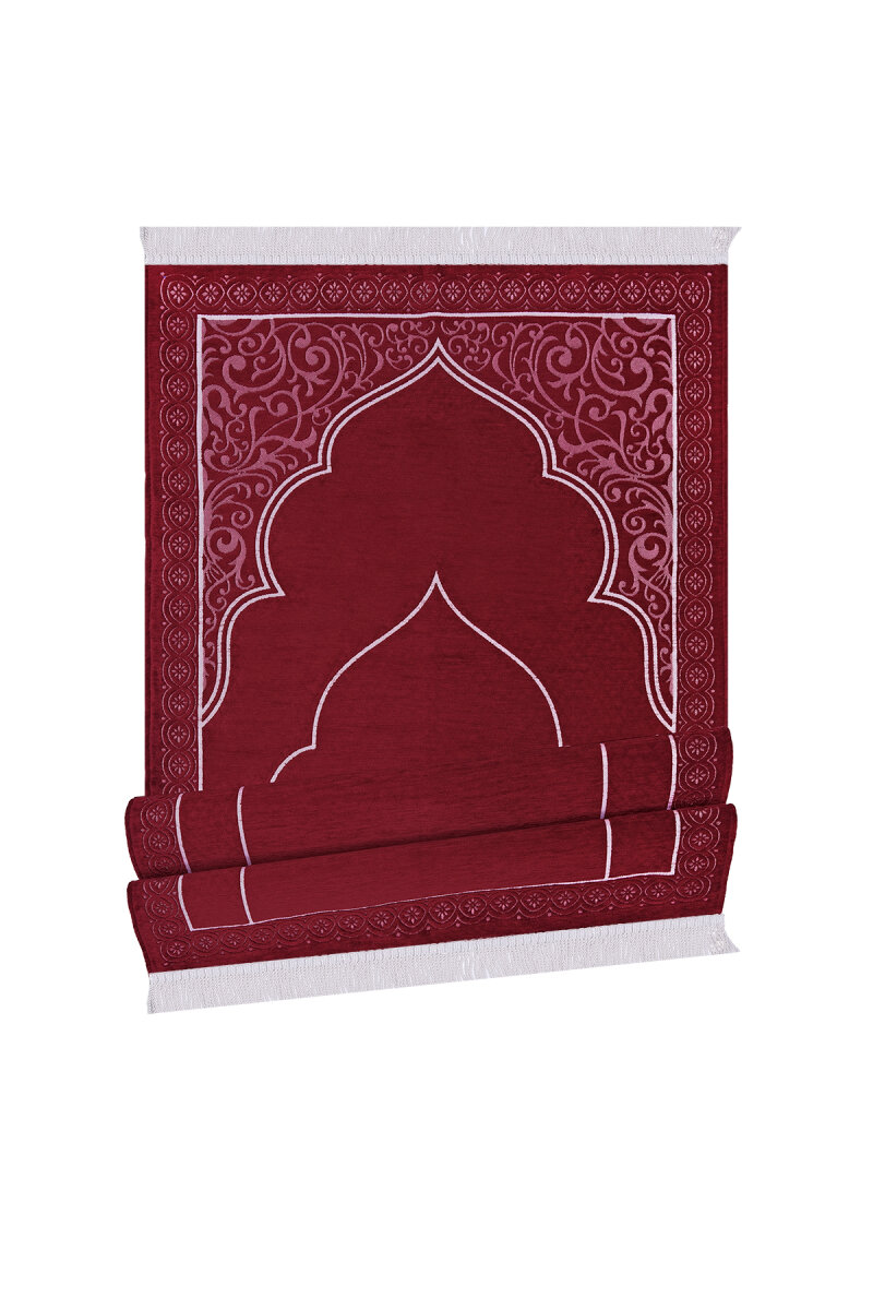 Bordo Düz Renk Kabartmalı Özel Dokuma Seccade