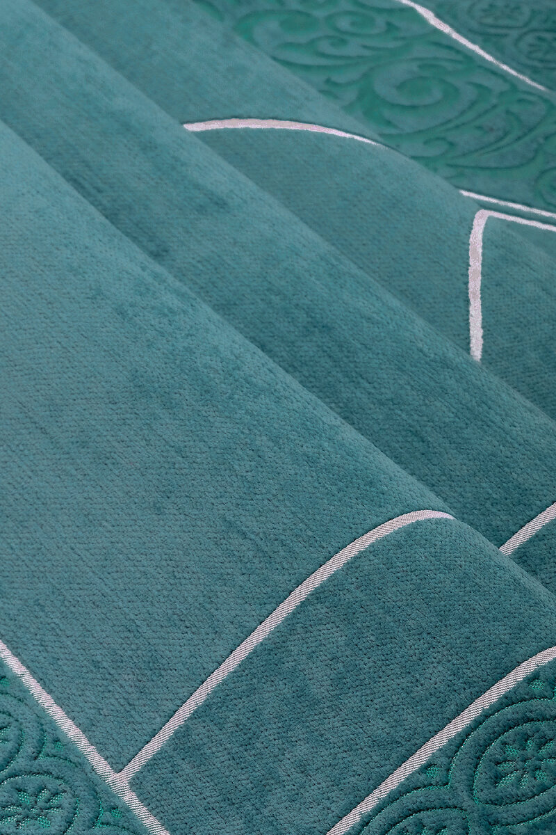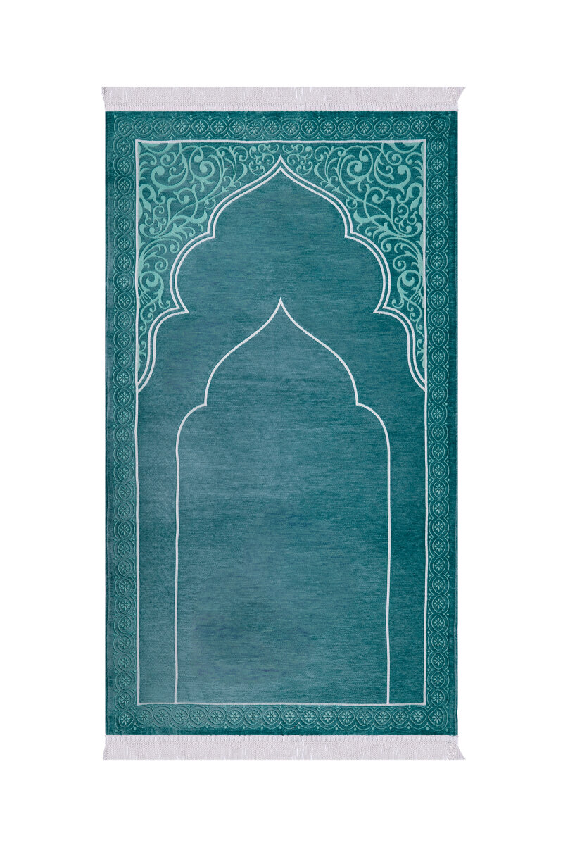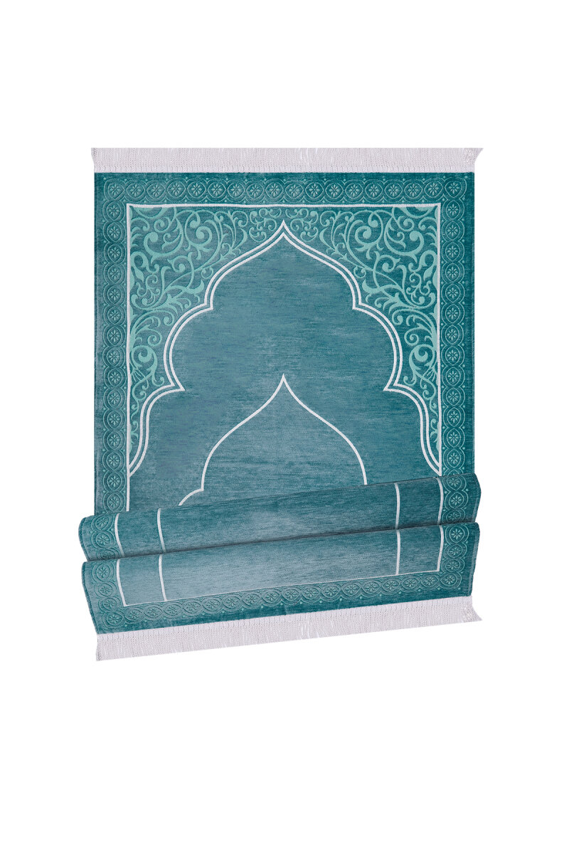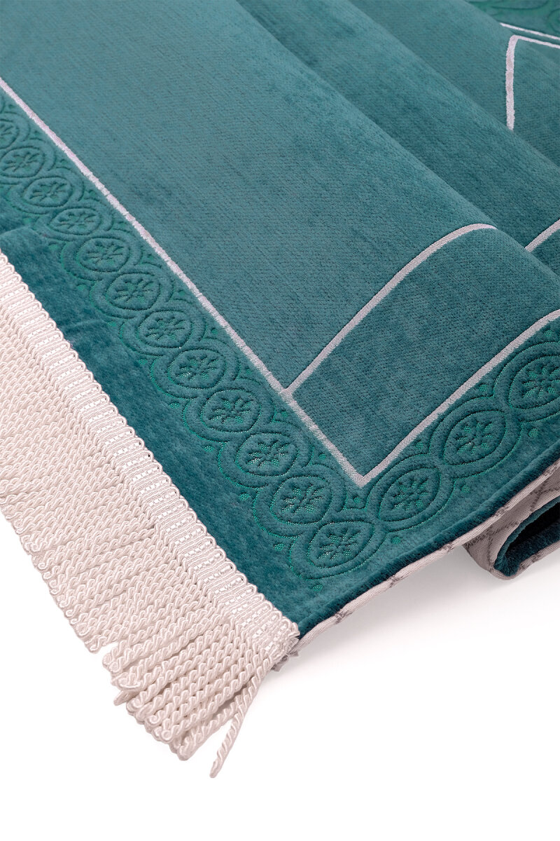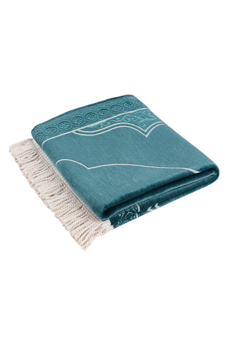 Petrol Mavi Düz Renk Kabartmalı Özel Dokuma Seccade