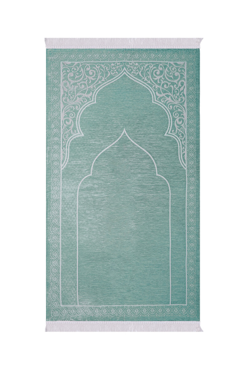 Su Yeşil Düz Renk Kabartmalı Özel Dokuma Seccade