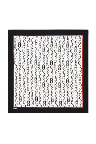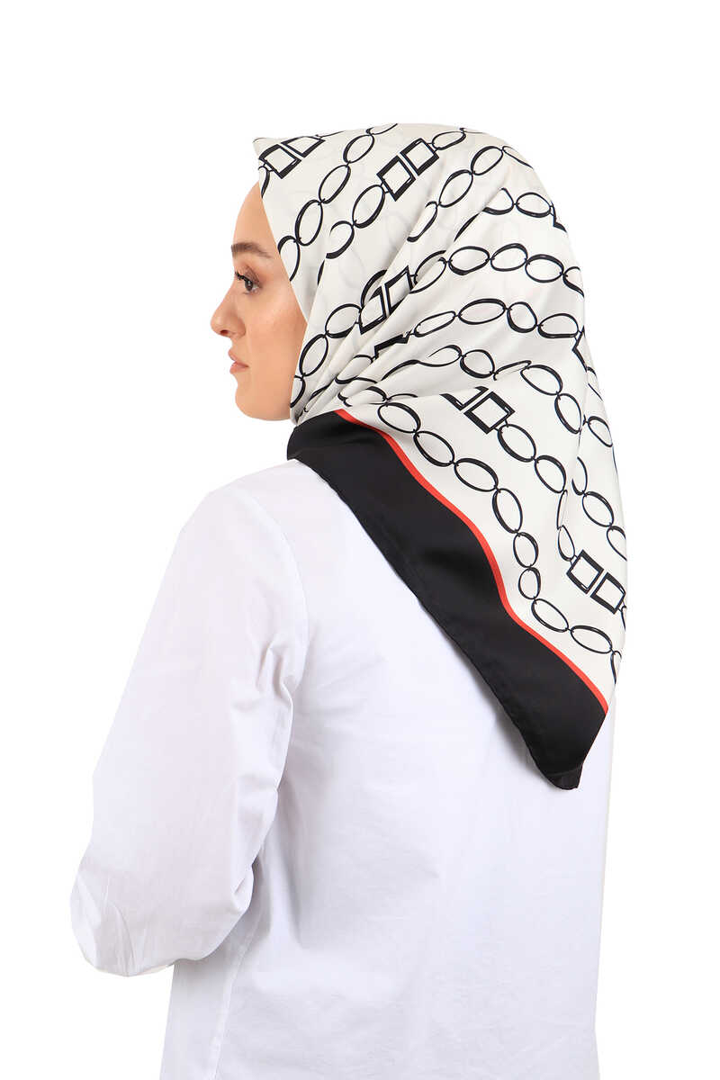 With the Ecru Black Chain Pattern Twill Silk Square Scarf, which is reflected in the unique elegance of silk, you will feel the atmosphere of unity in different beauty. Our product; It offers comfort of use with its 100% Silk content and 90x90cm dimensions.
