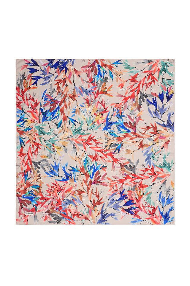 Ecru Leaf Pattern Soft Square Scarf