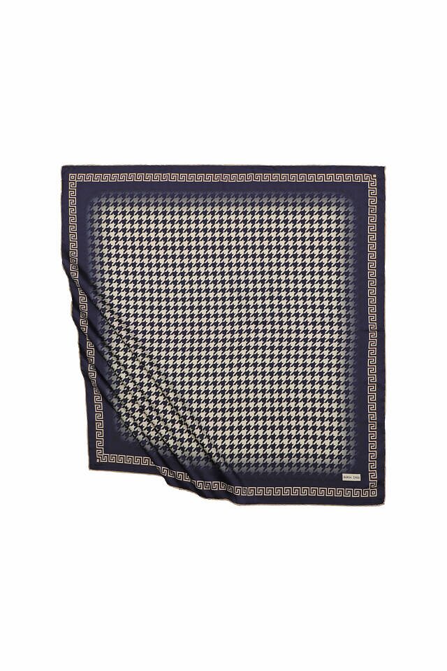 Ecru Navy Blue Crowbar is a fun and classic choice where silky fabric texture and bright and lively colors come together... Add energy to life with the silky texture of the patterns! Our product: 100% silky rayon fabric offers ease of use with its dimensions of 90x90 cm.