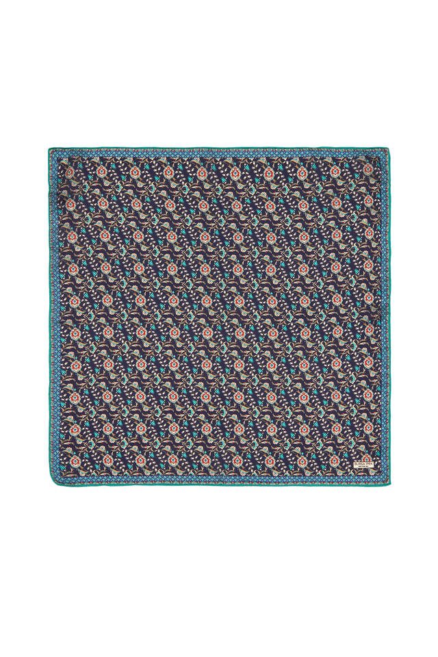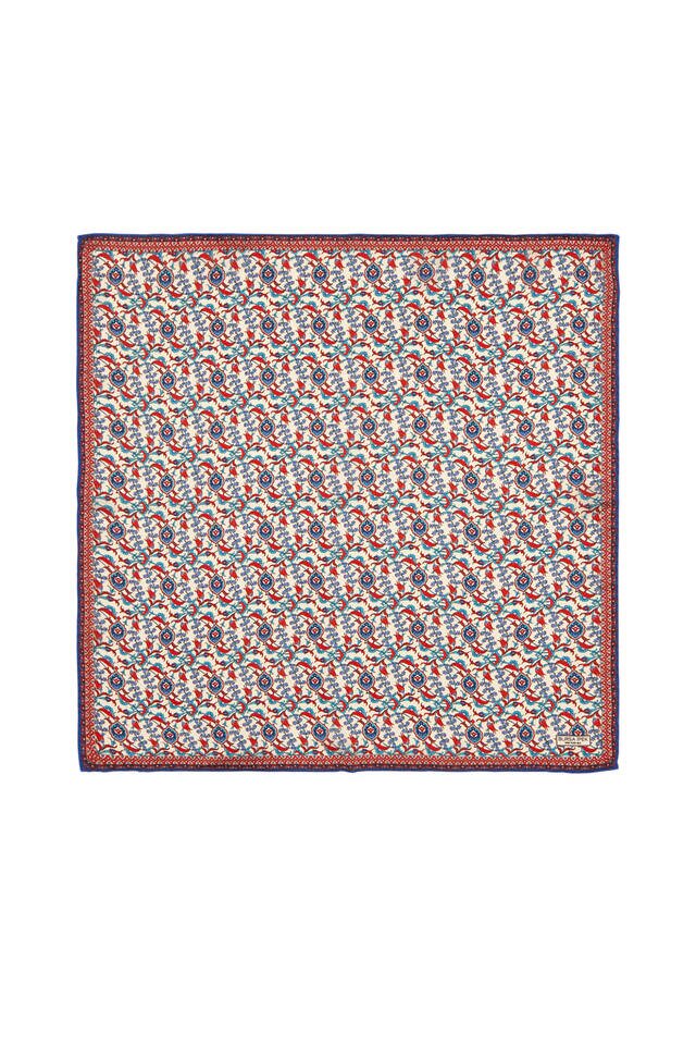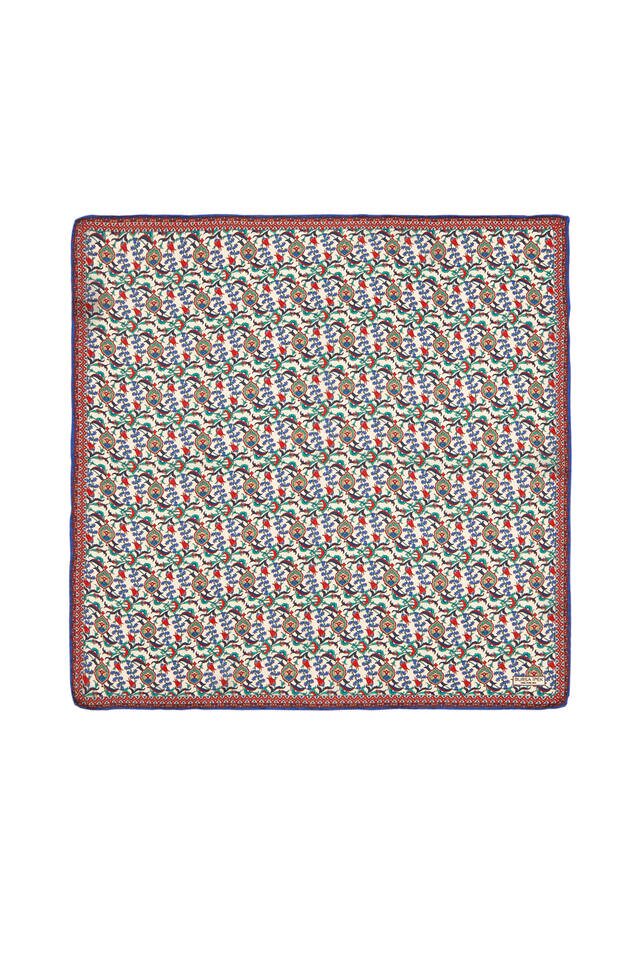 The most special patterns of our traditional heritage meet with silk, accompanied by modern interpretations. The indispensable passion of women, embroidered with a unique weaving, Turkish Motif Ecru Dark Blue colored unique Ivy Tulip patterned silk Pocket Square model; It offers you both comfort and traditional elegance with a thick, soft and spacious touch. It offers comfort of use with its 100% silk content and 55x55cm dimensions.