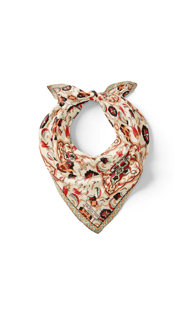The most special patterns of our traditional heritage meet with silk accompanied by modern interpretations. The indispensable passion of women, our Turkish Motif Ecru Taba colored unique Tile Tulip pattern silk Pocket Square model; It offers you both comfort and traditional elegance with a thick, soft and spacious touch. It offers comfort of use with its 100% silk content and 55x55cm dimensions.