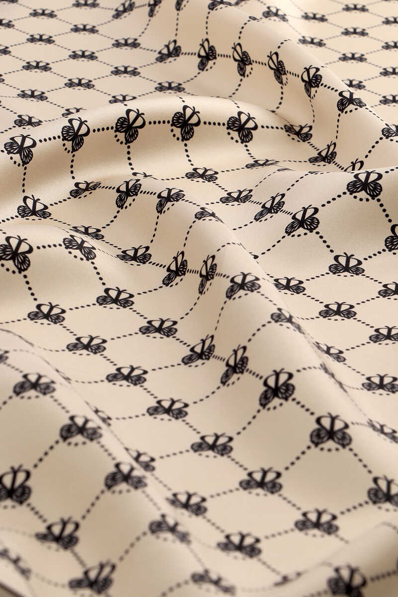 İpeğin eşsiz zarafetine yansıtılmış Ekru Kelebek Monogram Twill İpek Eşarp ile sizler de farklı güzellikteki bütünlüğün atmosferini hissedeceksiniz. Ürünümüz; %100 İpek içeriği ile 90x90cm boyutlarıyla kullanım rahatlığı sunuyor.