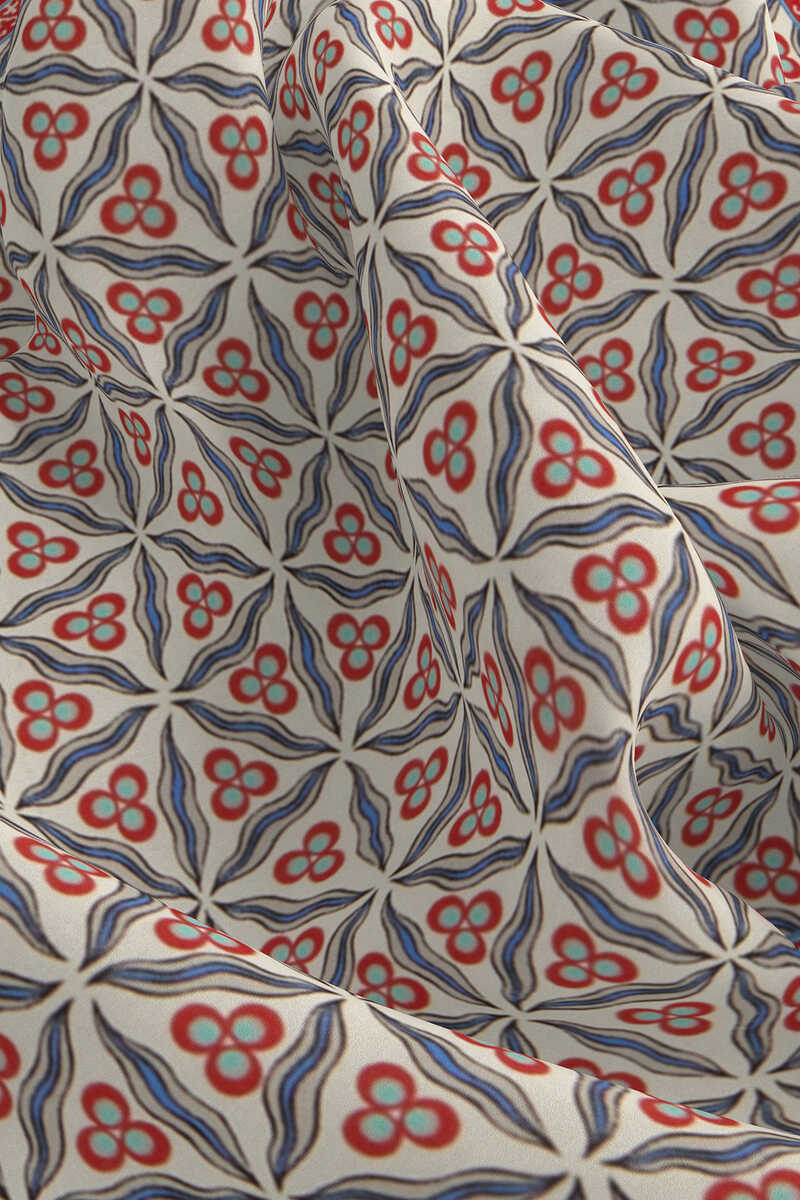 Geleneksel mirasımızın en özel desenleri modern yorumlar eşliğinde ipek ile buluşuyor.Kadınların vazgeçilmez tutkusu eşsiz dokumayla işlenen Türk Motifli Ekru Kırmızı renkli benzersiz Çintemani desenli ipek mendil modelimiz; kalın, yumuşak ve ferah bir dokunuşla size hem konforu hem de gelenekselleşen şıklığı sunuyor.Ürünümüz; %100 İpek içeriği ile 55x55cm boyutlarıyla kullanım rahatlığı sunuyor.