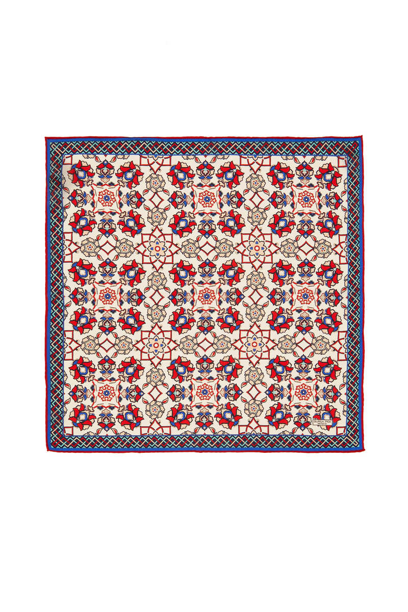 Geleneksel mirasımızın en özel desenleri modern yorumlar eşliğinde ipek ile buluşuyor.Kadınların vazgeçilmez tutkusu eşsiz dokumayla işlenen Türk Motifli Ekru Kırmızı renkli benzersiz Motif desenli ipek mendil modelimiz; kalın, yumuşak ve ferah bir dokunuşla size hem konforu hem de gelenekselleşen şıklığı sunuyor.Ürünümüz; %100 İpek içeriği ile 55x55cm boyutlarıyla kullanım rahatlığı sunuyor.