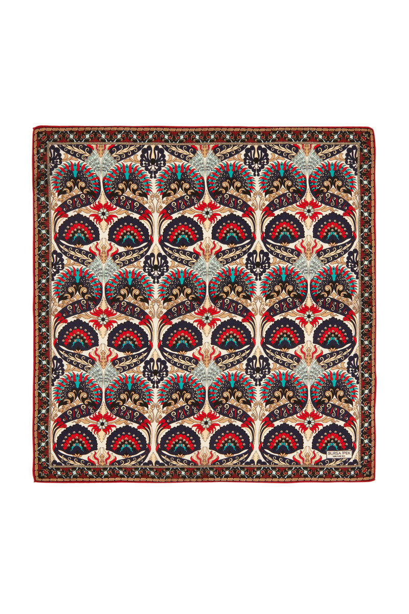 Geleneksel mirasımızın en özel desenleri modern yorumlar eşliğinde ipek ile buluşuyor.Kadınların vazgeçilmez tutkusu eşsiz dokumayla işlenen Türk Motifli Ekru Lacivert renkli benzersiz Tavuskuşu desenli ipek mendil modelimiz; kalın, yumuşak ve ferah bir dokunuşla size hem konforu hem de gelenekselleşen şıklığı sunuyor.Ürünümüz; %100 İpek içeriği ile 55x55cm boyutlarıyla kullanım rahatlığı sunuyor.