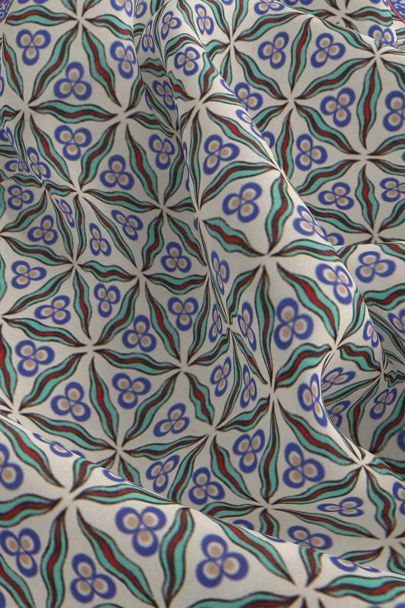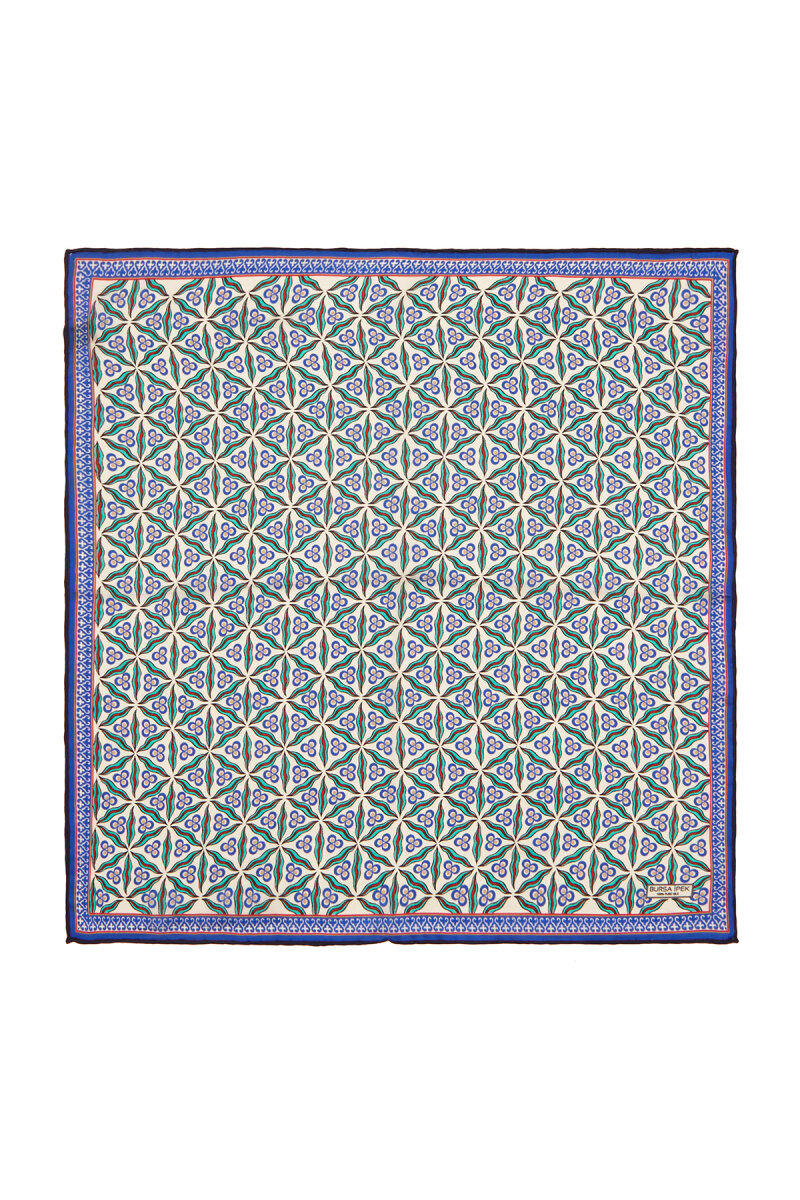 Geleneksel mirasımızın en özel desenleri modern yorumlar eşliğinde ipek ile buluşuyor.Kadınların vazgeçilmez tutkusu eşsiz dokumayla işlenen Türk Motifli Ekru Turkuaz renkli benzersiz Çintemani desenli ipek mendil modelimiz; kalın, yumuşak ve ferah bir dokunuşla size hem konforu hem de gelenekselleşen şıklığı sunuyor.Ürünümüz; %100 İpek içeriği ile 55x55cm boyutlarıyla kullanım rahatlığı sunuyor.
