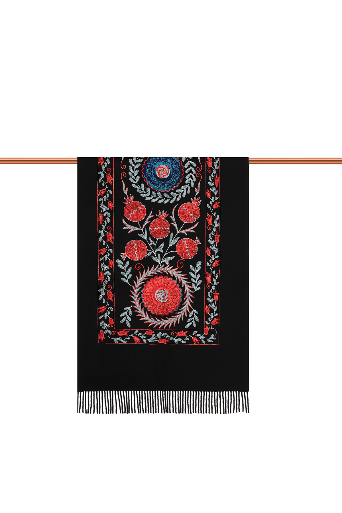 Our Black Embroidered Winter Shawls, carefully crafted to keep you warm on chilly winter days, stand out with their striking colors and patterns. Made of acrylic and measuring 70x190cm, they offer ease of use.