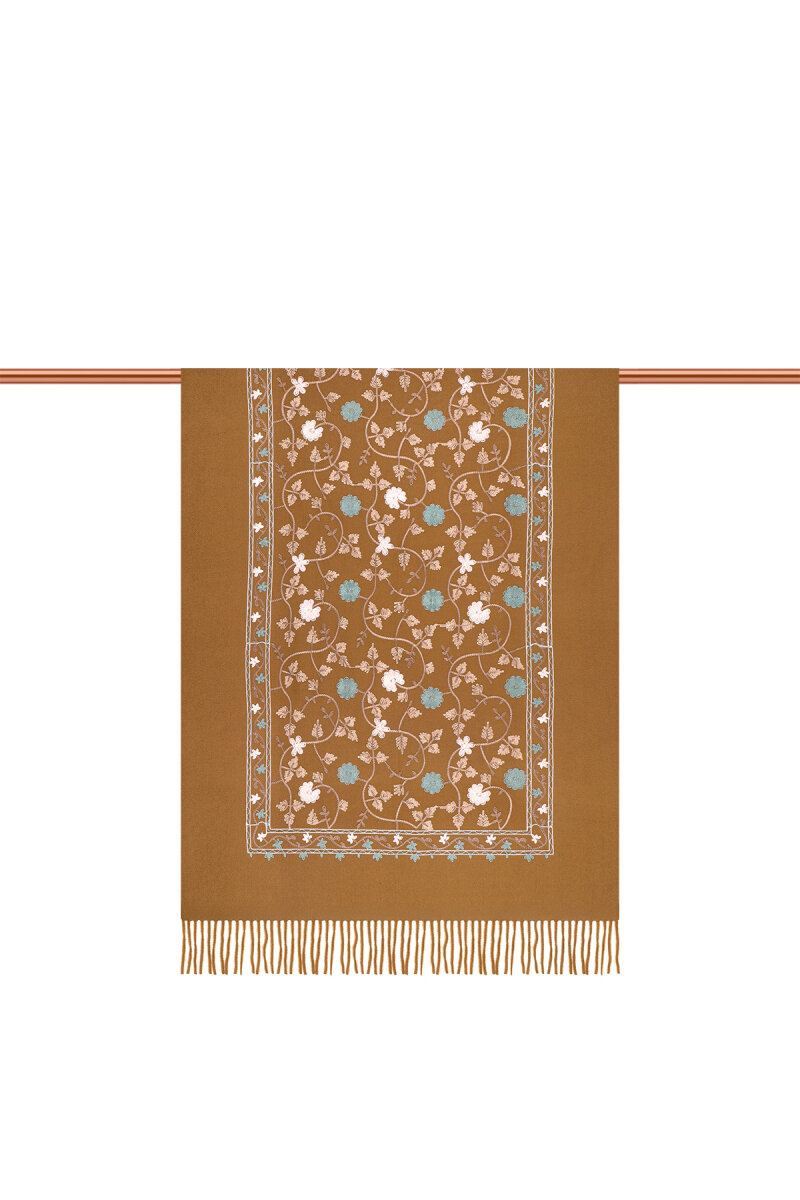 Beige Embroidered Winter Shawl