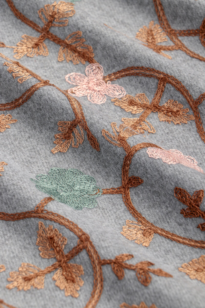 Our Silver Embroidered Winter Shawls, carefully crafted to keep you warm on chilly winter days, stand out with their striking colors and patterns. Made of acrylic and measuring 70x190cm, they offer ease of use.
