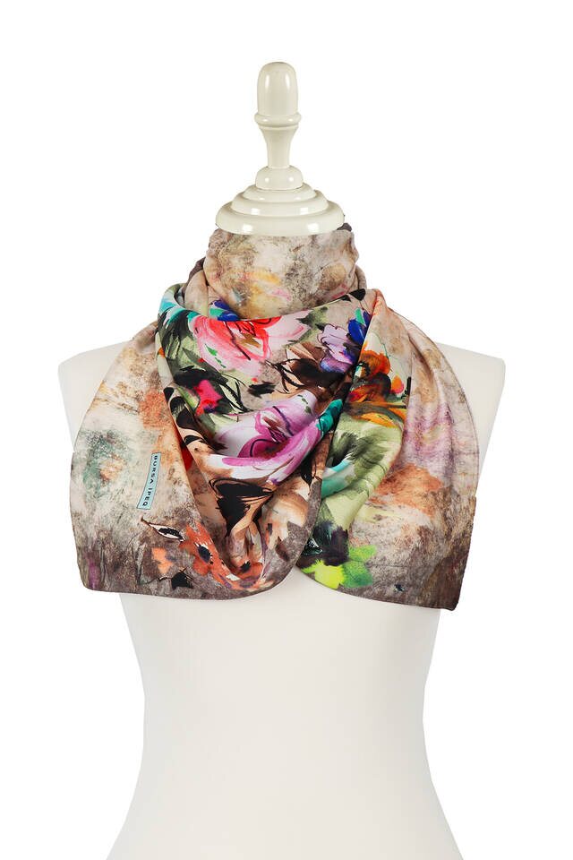 Brown Flower Silky Foulard