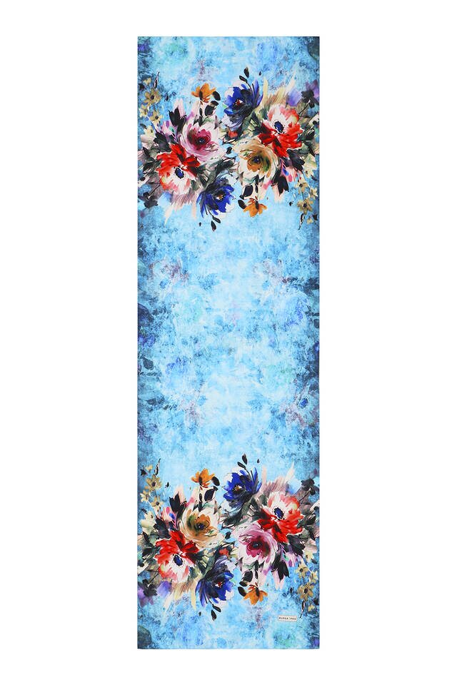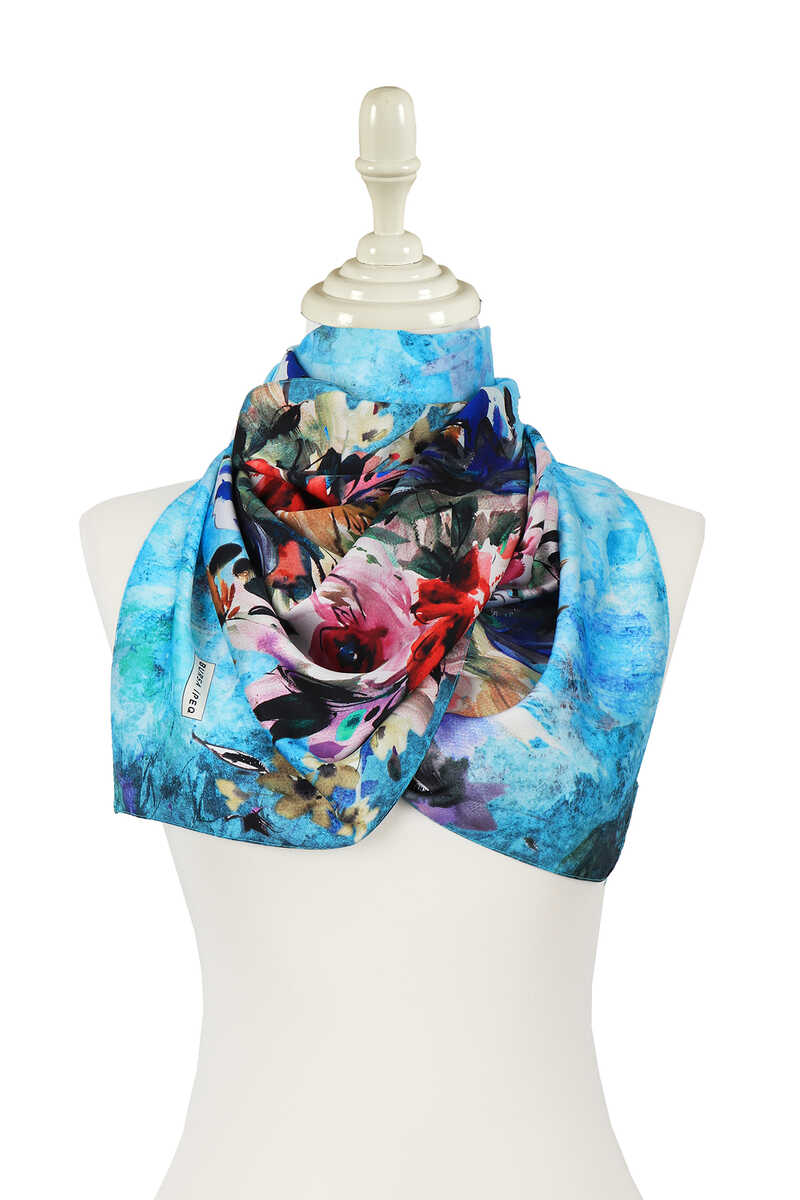 Turquoise Flower Silky Foulard
