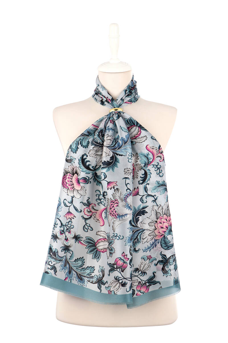 Offering both elegance and sophistication, the Baby Blue Floral Patterned Voile Silk Scarf is an elegant accessory perfect for both everyday wear and special occasions. The light texture and softness of the voile silk fabric ensure a comfortable wear without causing discomfort to your skin. Made with 100% voile silk and measuring 45 x 150 cm, this product offers ease of use.