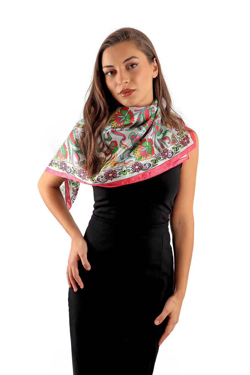 The fuchsia floral pattern voile silk Square Scarf will add a sophisticated touch to your style in every season with its elegant and stylish design. Made of high quality voile silk, this Square Scarf offers both comfort and elegance with its lightness and soft texture. Our product offers ease of use with its 100% Voile Silk fabric and 90 x 90 cm dimensions.