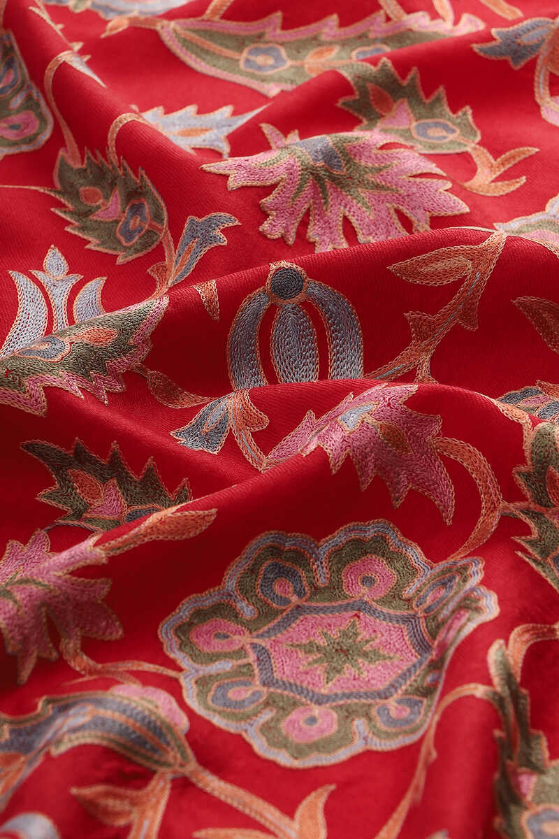 Serin kış günlerinde sizleri sıcak tutmak için özenle üretilen Bordo Full İşlemeli Suzani Yün Şalllarımız özel işlemeleri ve renkleri ile dikkatleri üzerinize çekiyor. Ürünümüz %100 yün içeriği, 75x200 cm boyutlarıyla kullanım kolaylığı sunuyor.