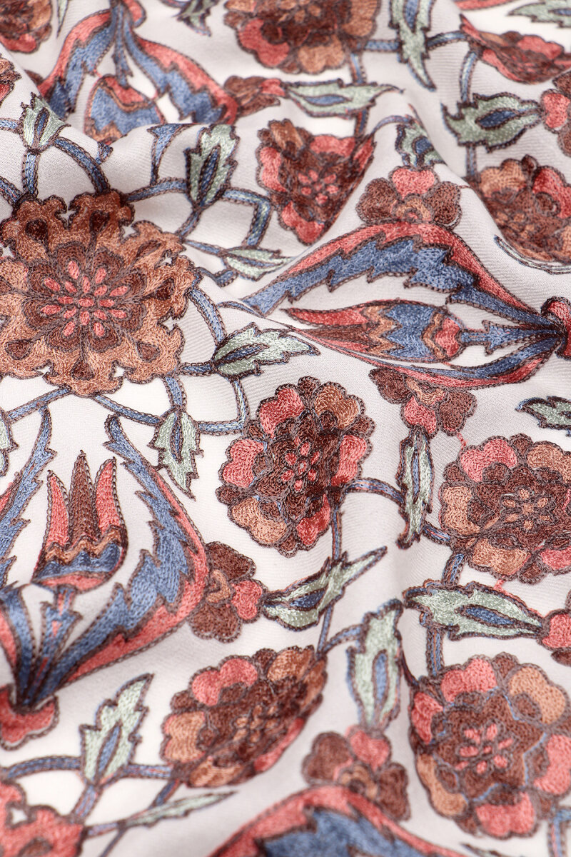 Our cream, fully embroidered Suzani wool shawls, meticulously crafted to keep you warm on chilly winter days, are sure to captivate you with their unique embroidery and vibrant colors. Made with 100% wool and measuring 75x200cm, they offer ease of use.