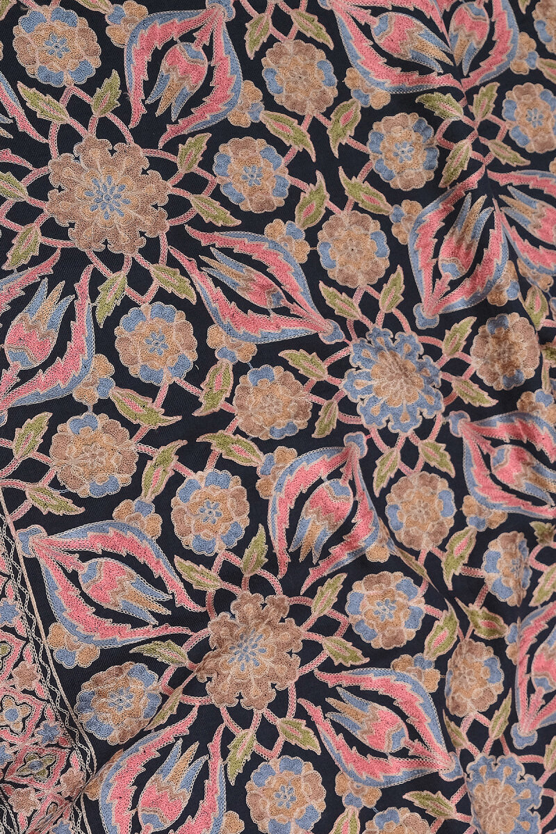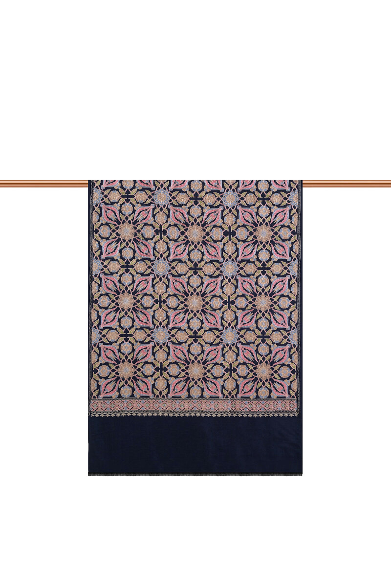 Lacivert Full İşlemeli Suzani Yün Şal