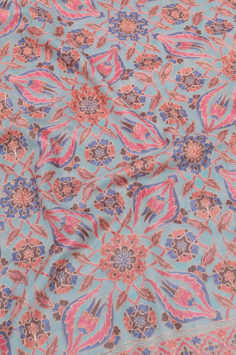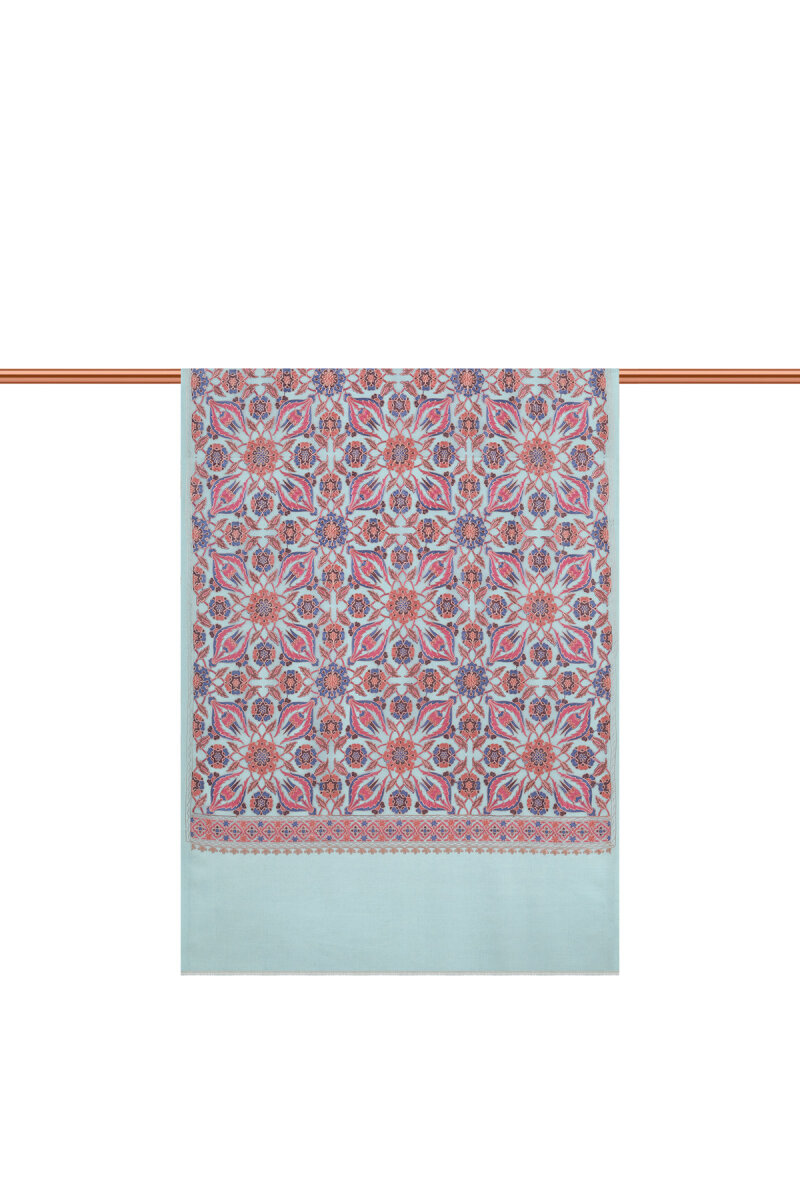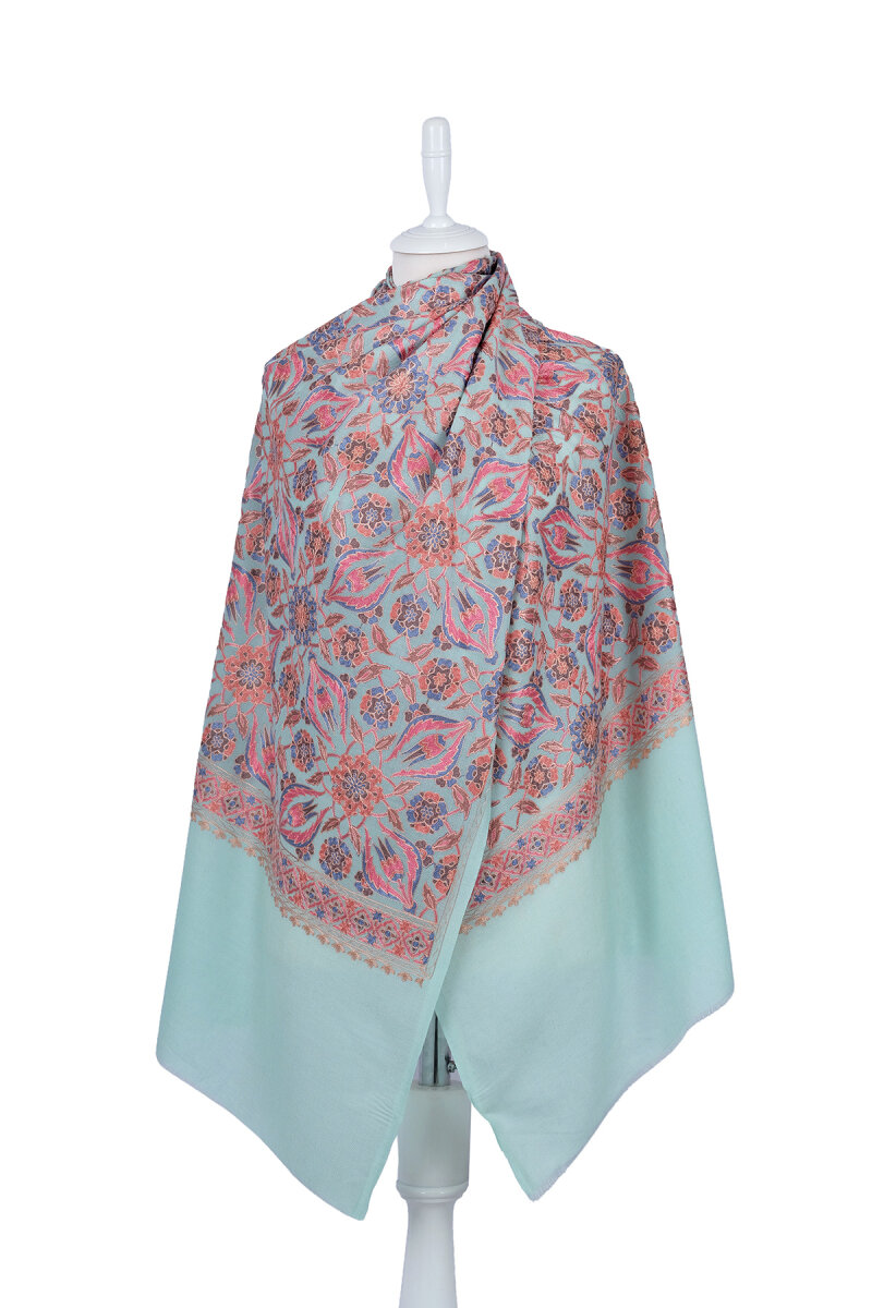 Su Yeşil Full İşlemeli Suzani Yün Şal
