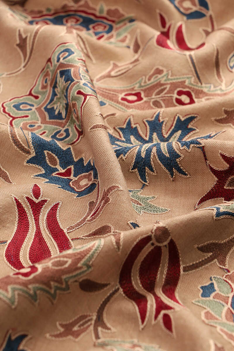 Sütlü Kahve Full İşlemeli Suzani Yün Şal