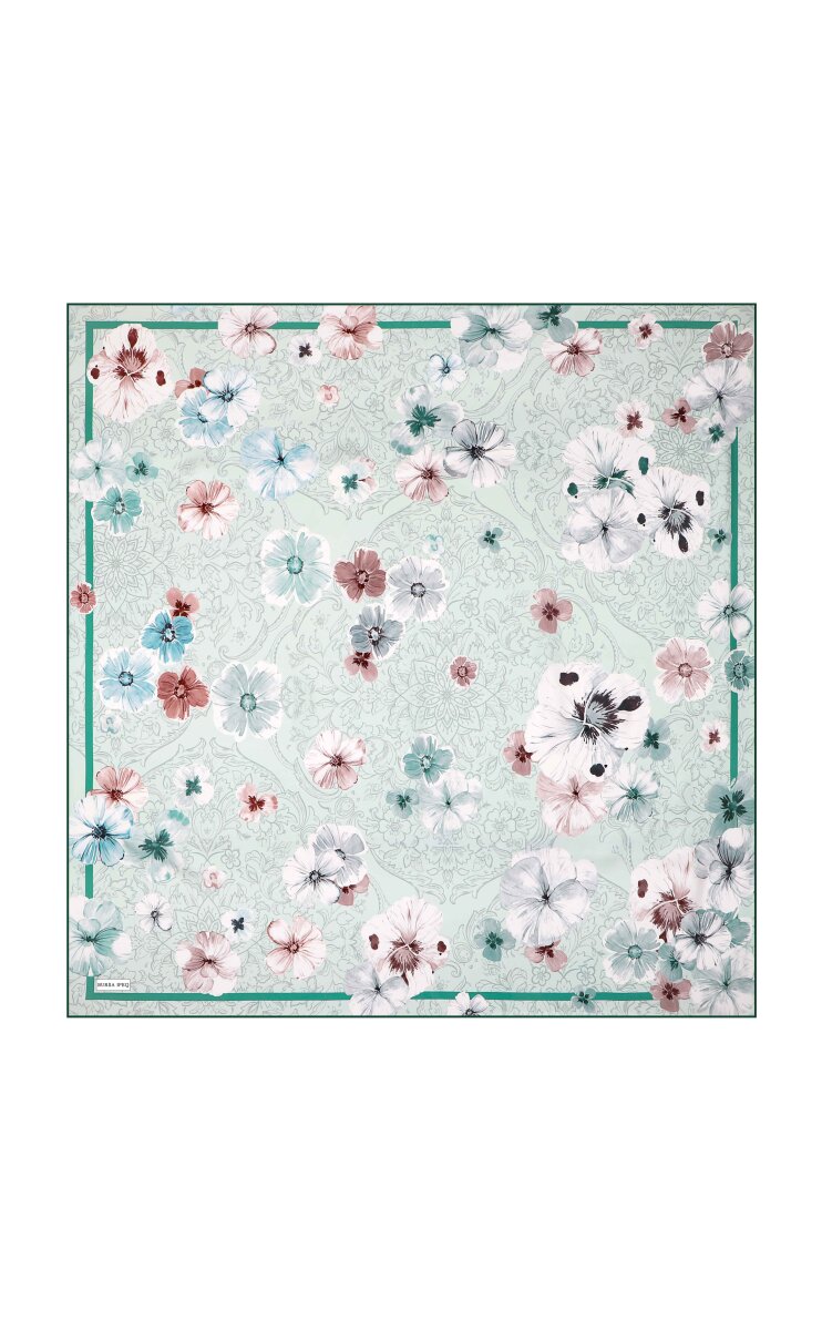 Mint Poppy Pattern Double-Sided Twill Silk Scarf