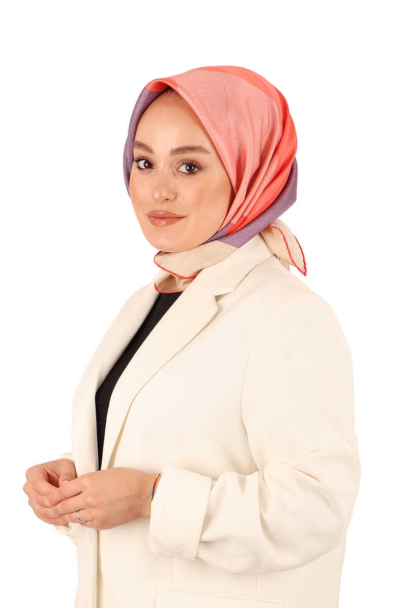 مع الوشاح المربع المصنوع من حرير التويل ذو النمط الهندسي الأرجواني وزهرة الرمان، والذي ينعكس في أناقة الحرير الفريدة، ستشعر بجو الوحدة في جمال مختلف. منتجنا؛ يوفر راحة الاستخدام بمحتواه الحريري بنسبة 100% وأبعاده 90x90 سم.