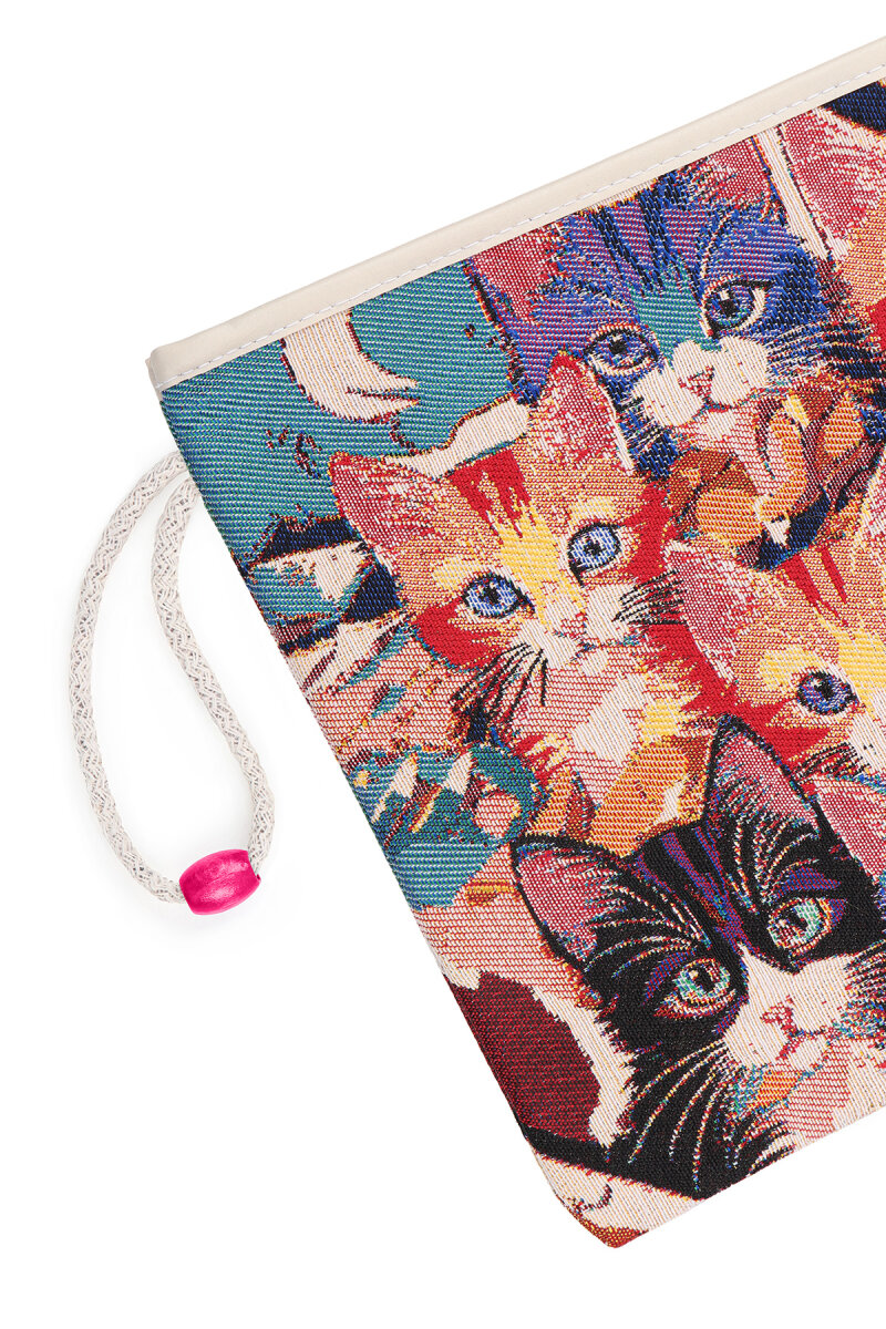 Goblen işlemeli çantalar özellikle el yapımı tasarımlarda popülerdir. İşlenmiş desenler, deri veya bez gibi farklı malzemelerle birleştirilir. Kedi desen goblen el çantamız 23x29 cm boyutları ile kullanım kolaylığı sunuyor.